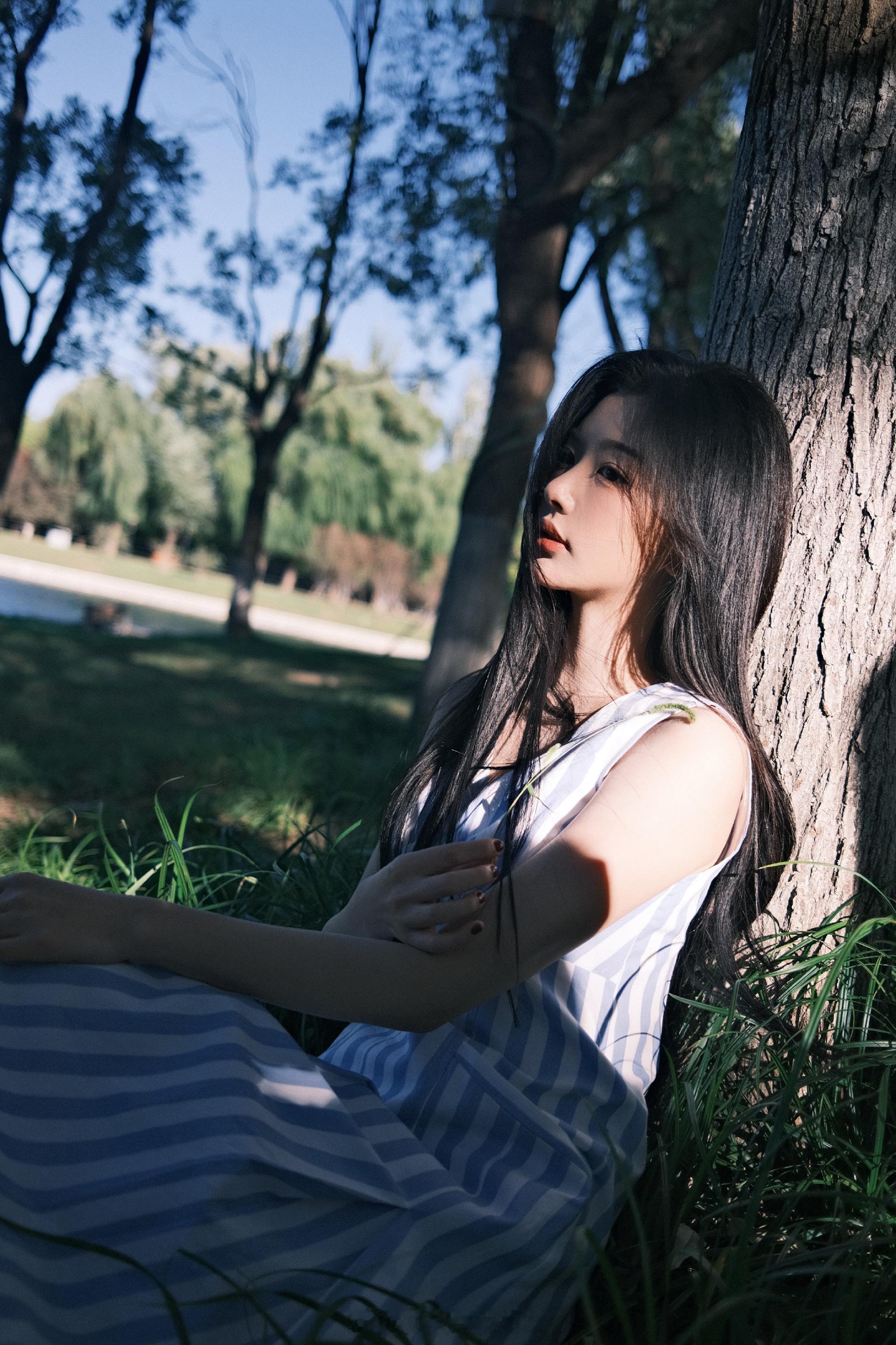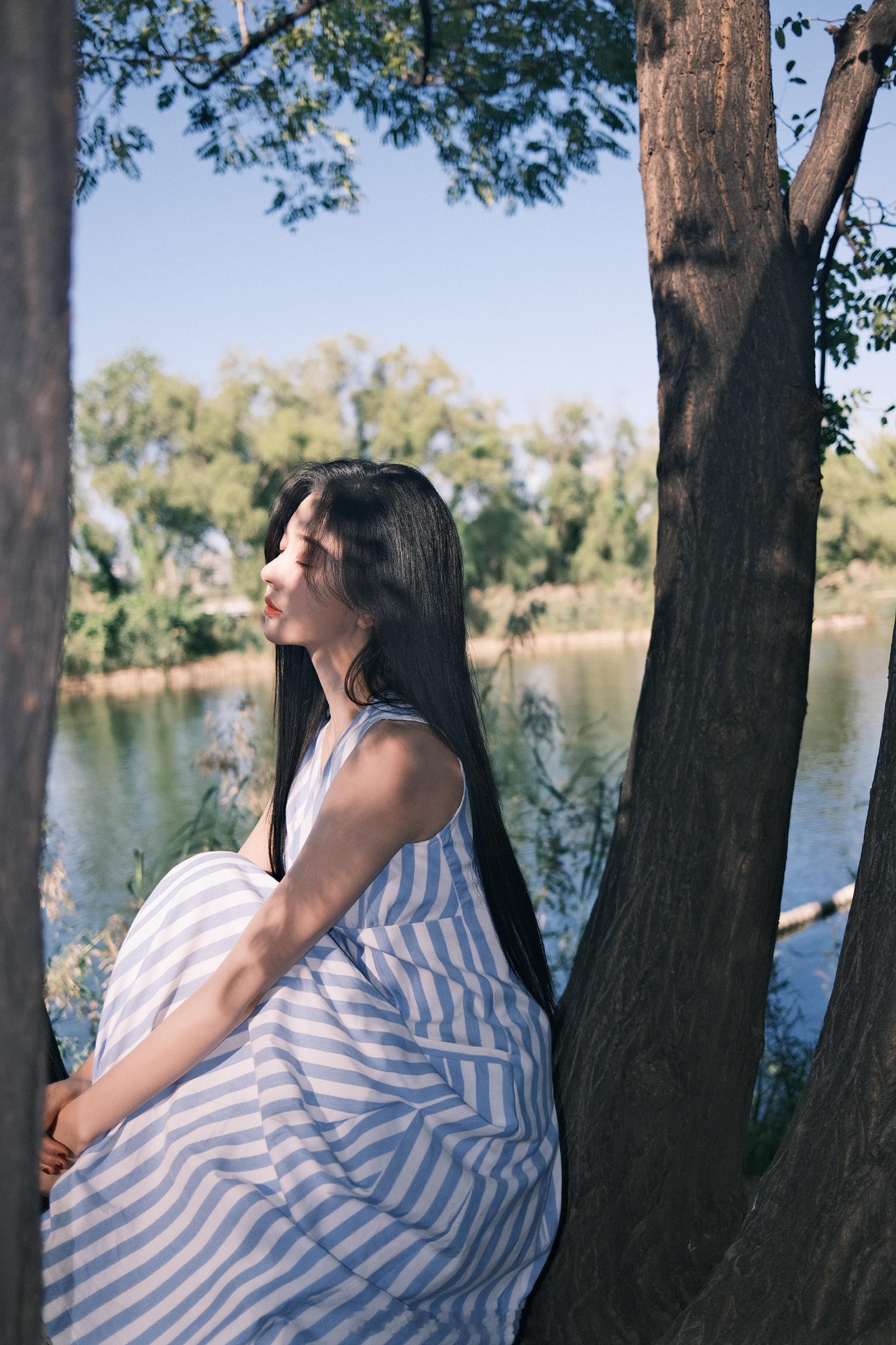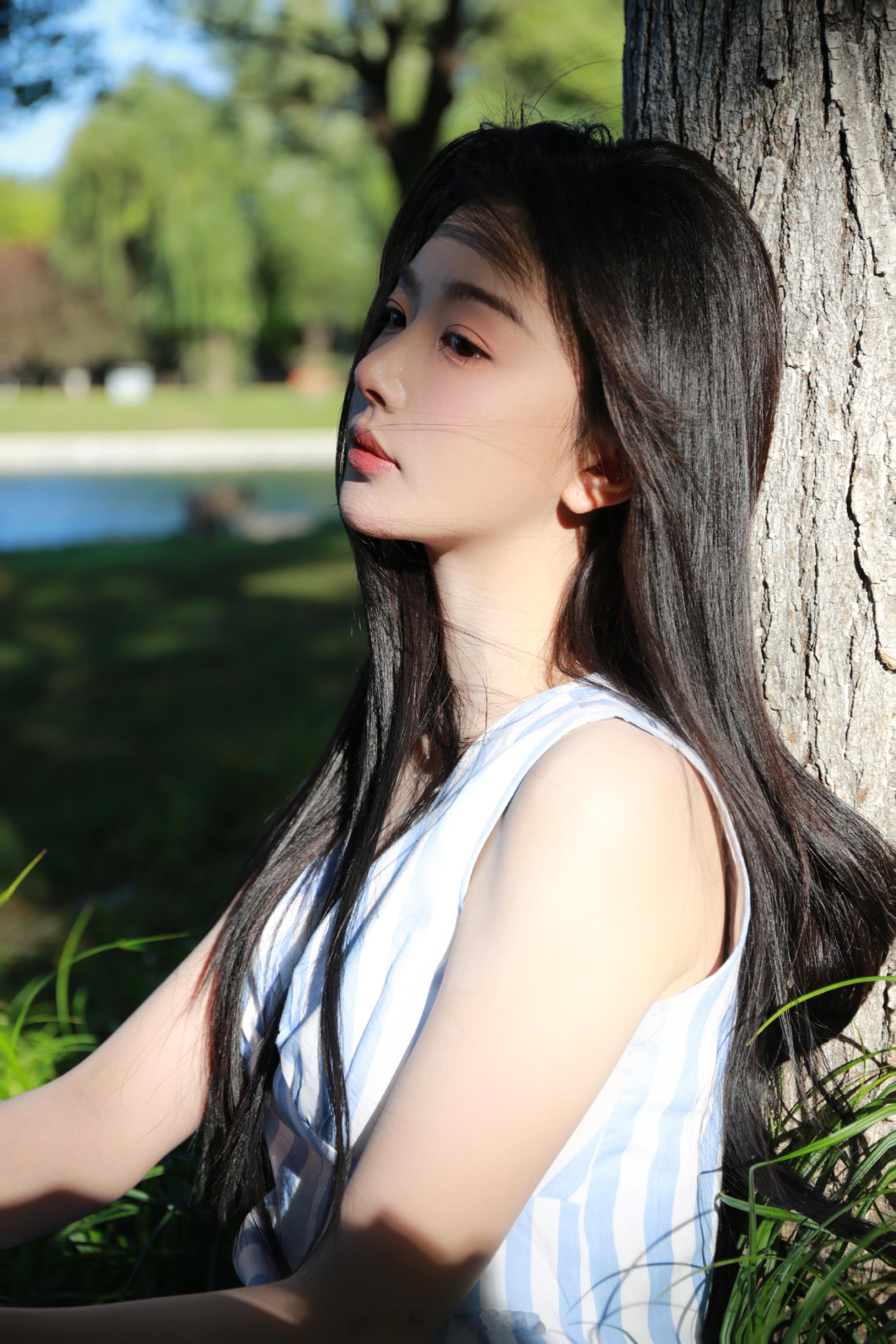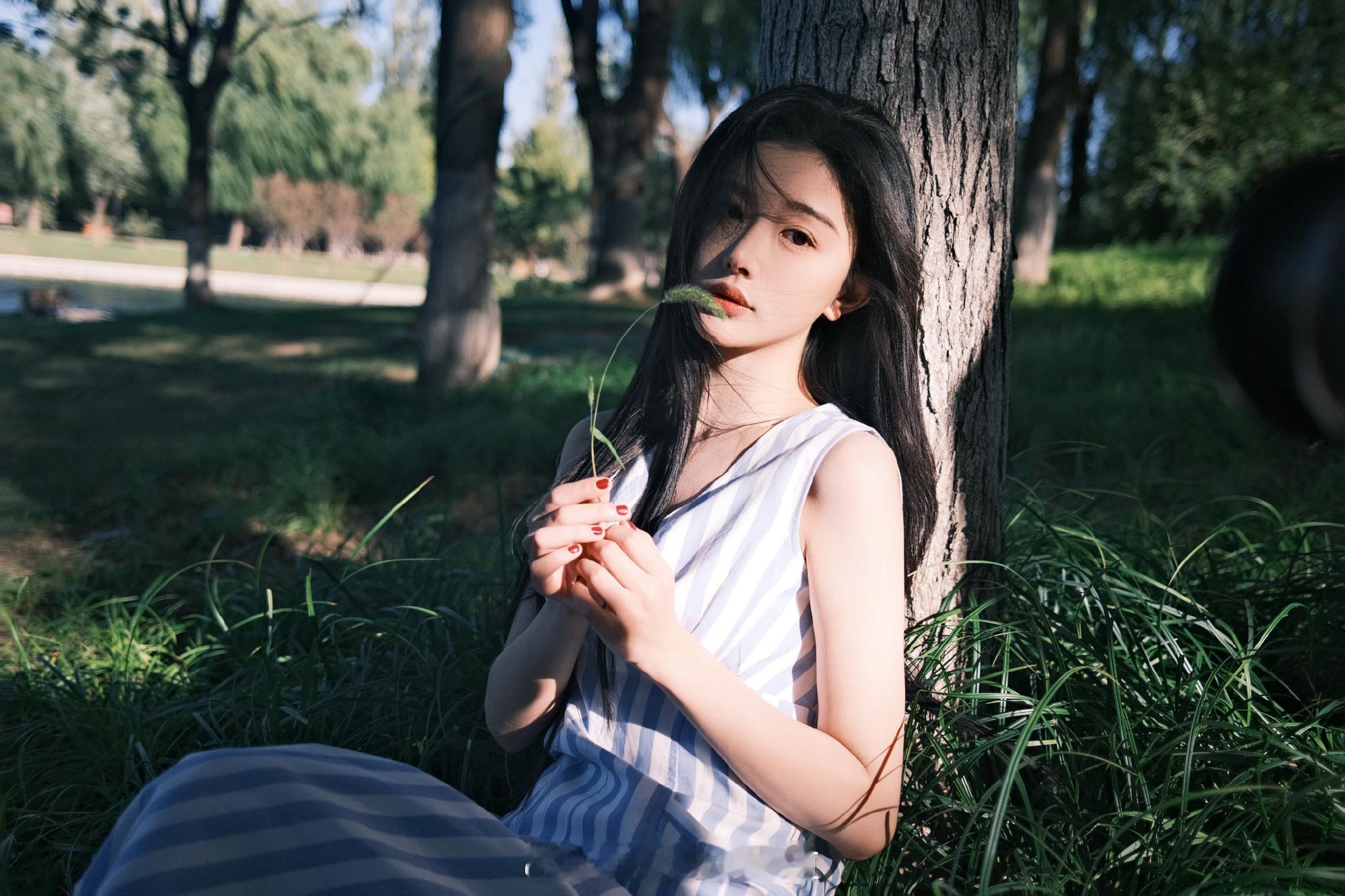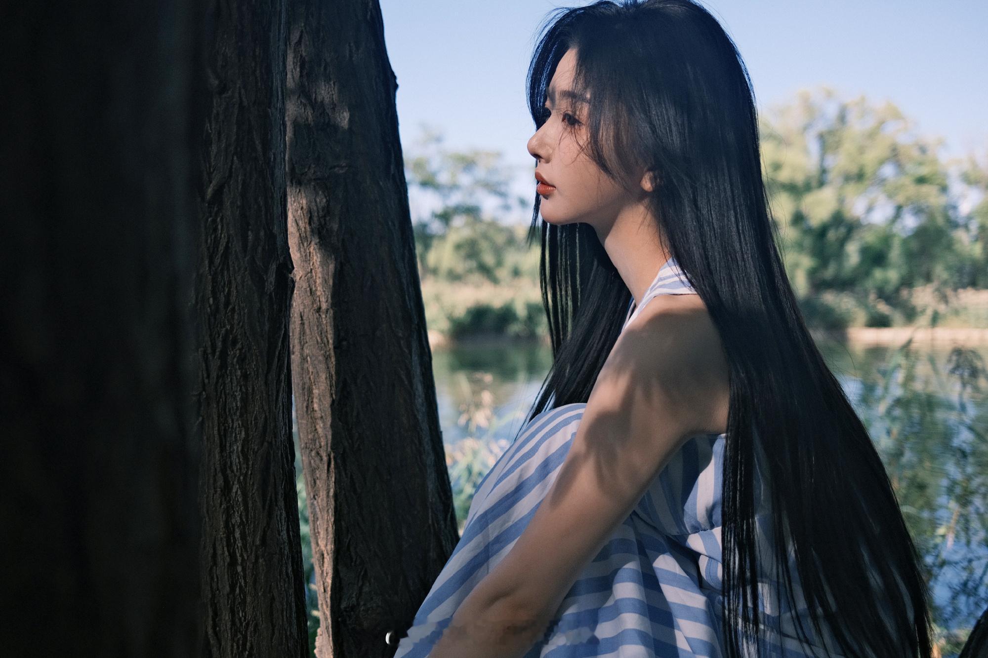 孔雪儿条纹穿搭唯美吸睛