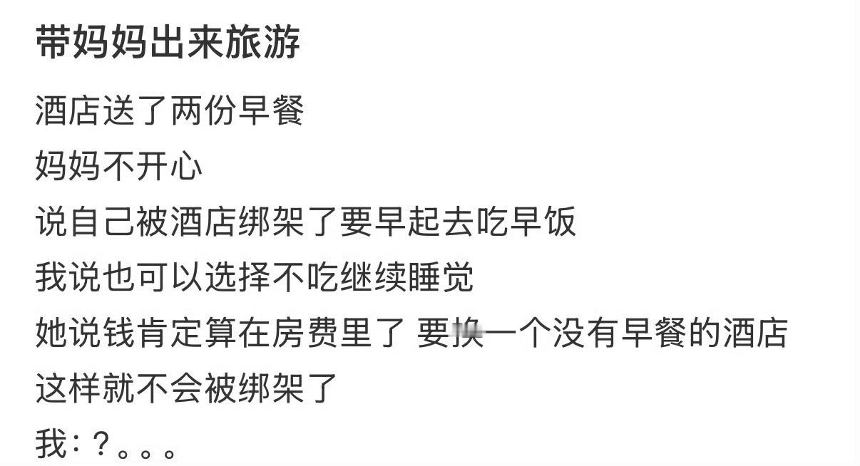 因为酒店送了早餐妈妈不开心
