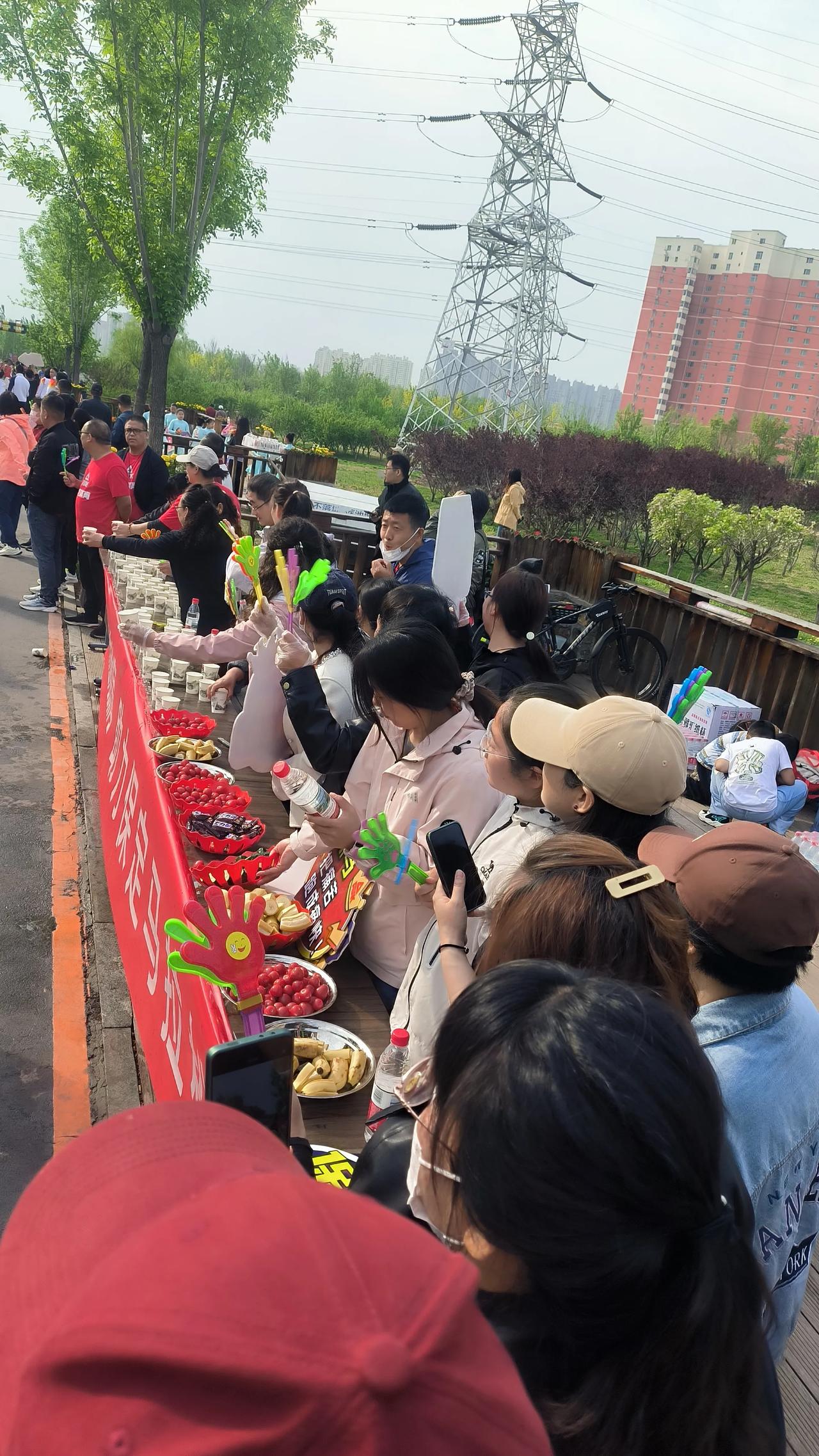 保马北堤路暖心补给站!满满一桌水果,这才是保定的硬核热情!🏃♂️🍎