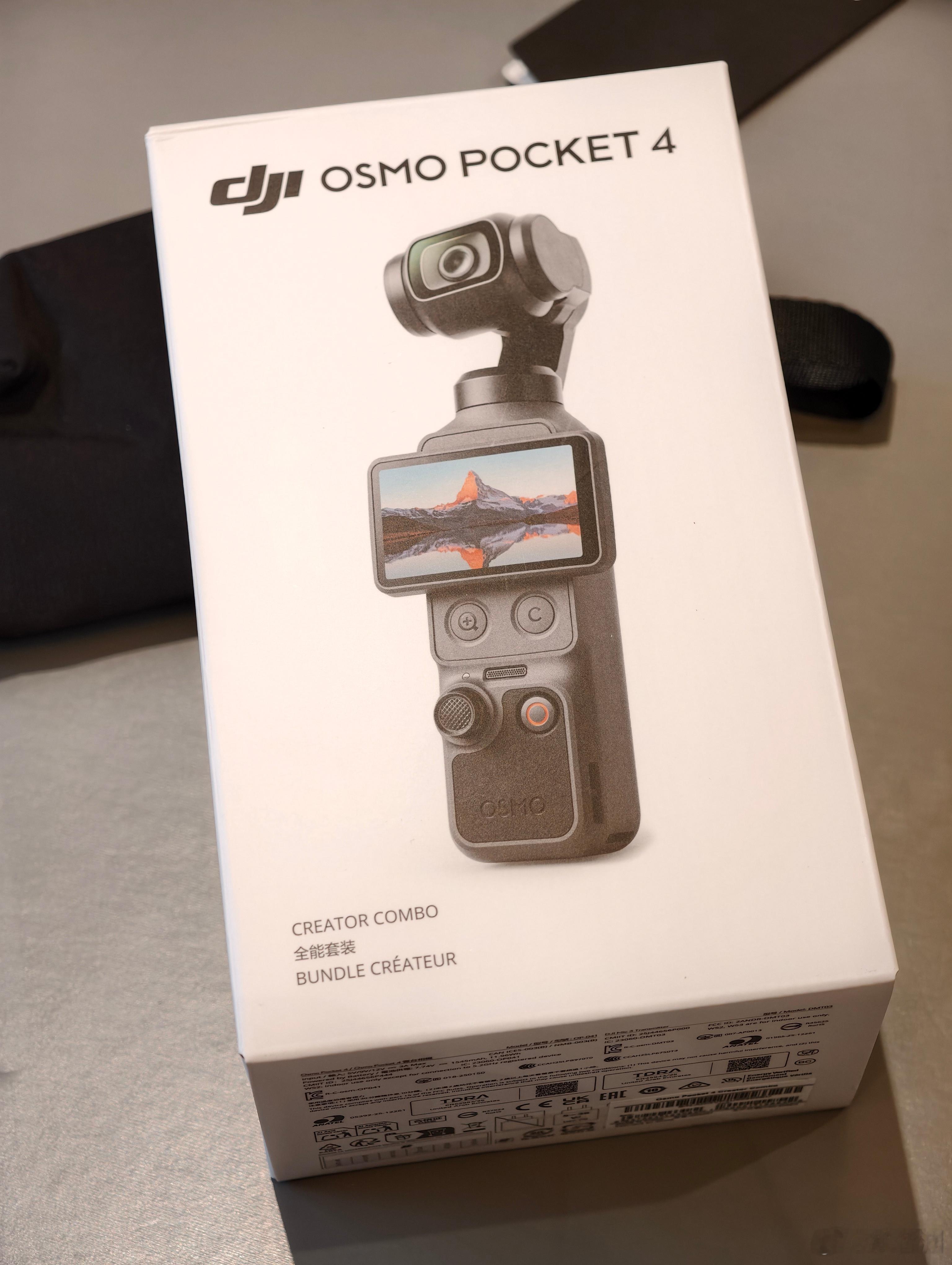 大疆Pocket4 全网最后一个开箱的博主来了,套装带两个包。第一感觉,主机的份量重了些,质感和做工更好。内置100G存储,续航时间据说也更长了。