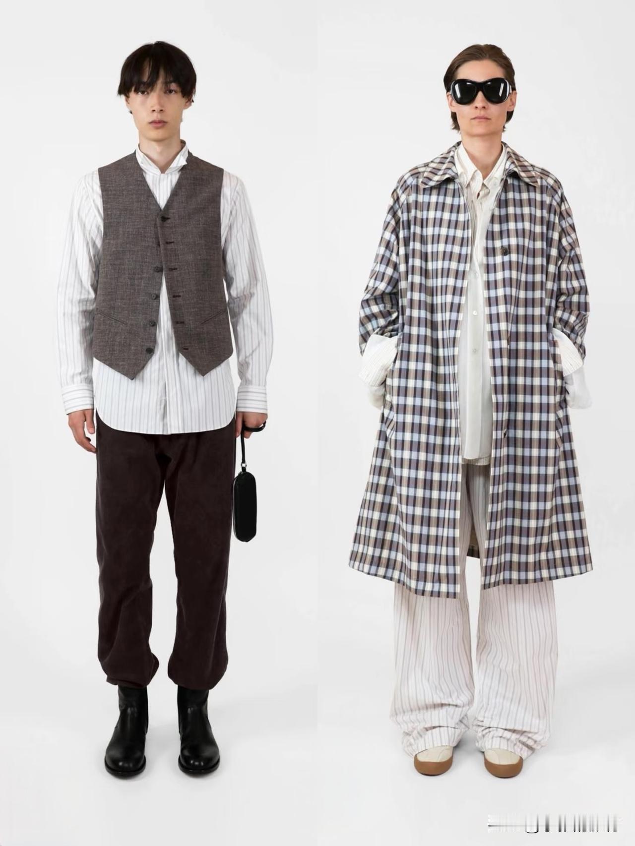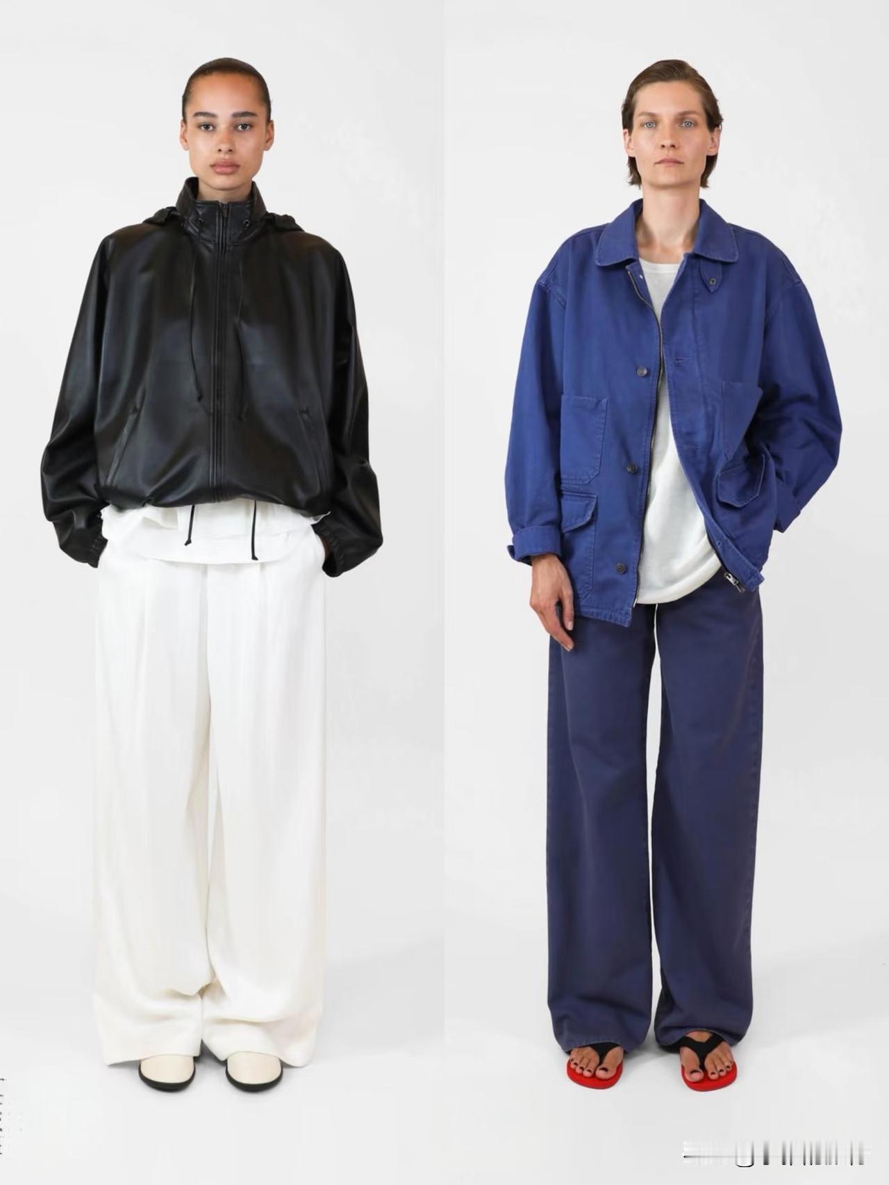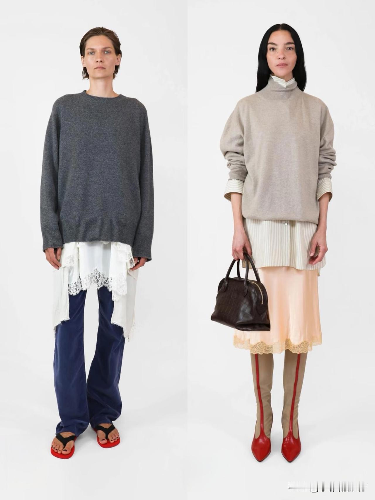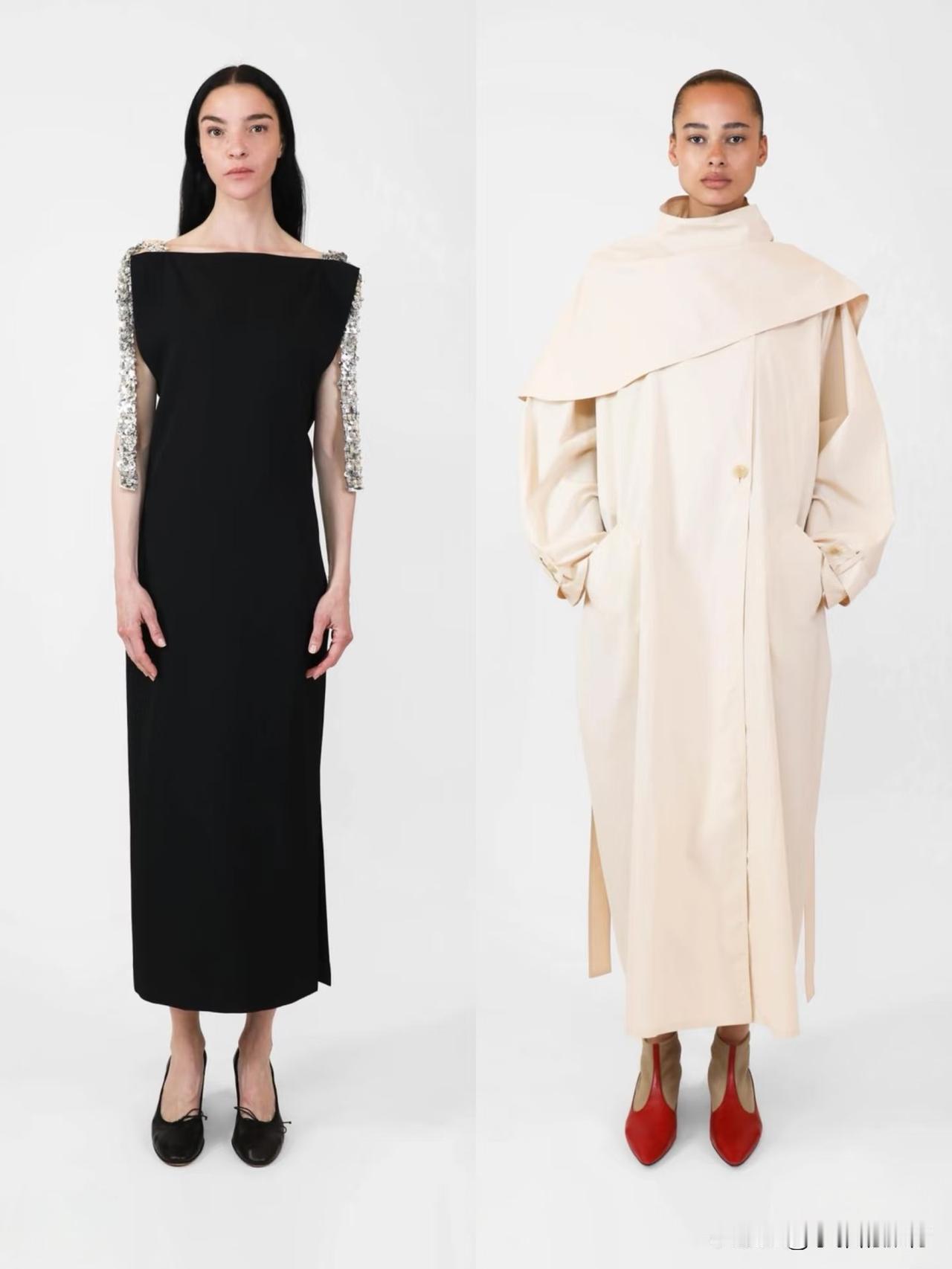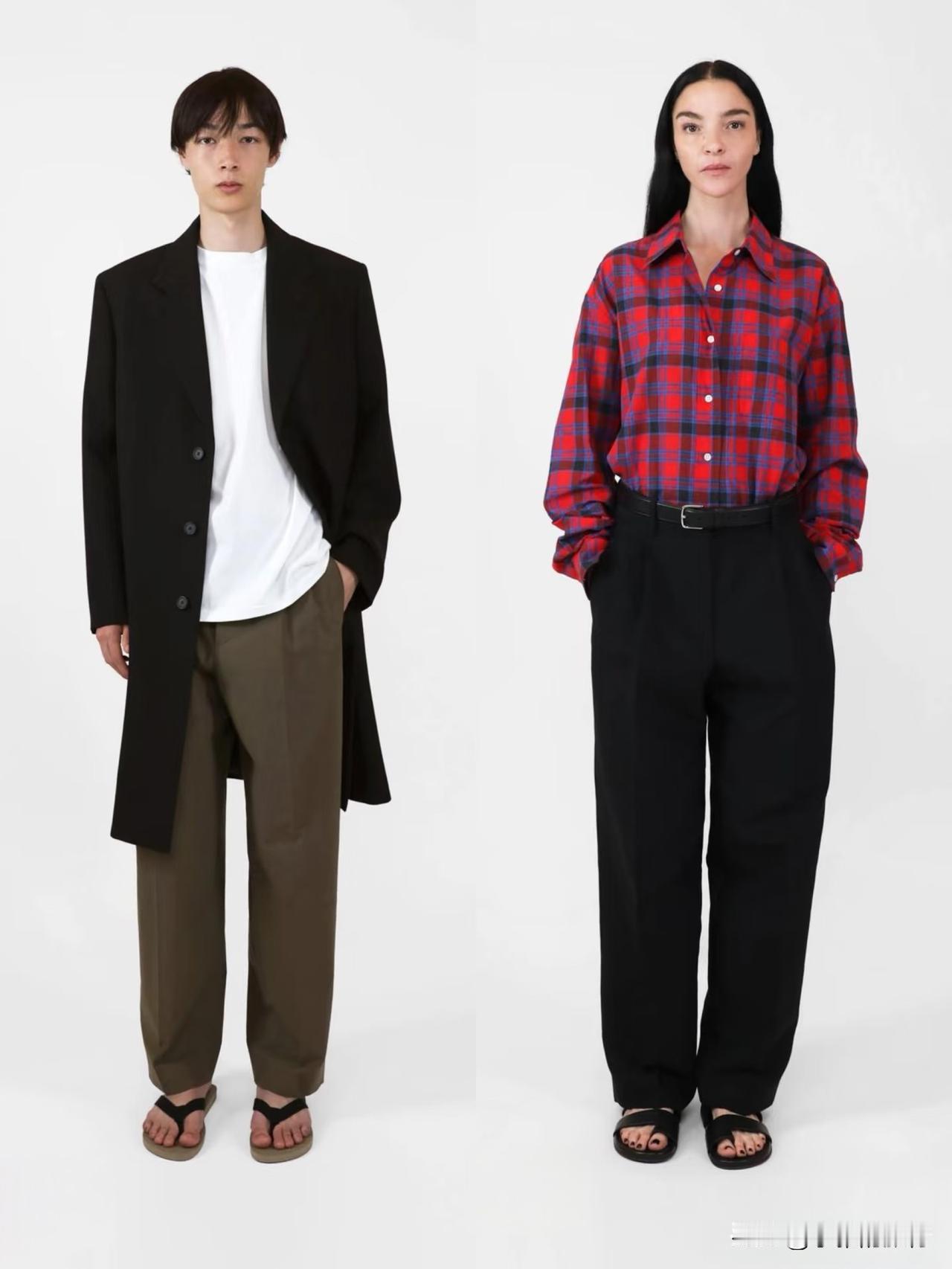 材质上偏爱羊毛、棉麻、真丝等天然面料,软硬碰撞间自带温润质感。廓形遵循宽松与合身的平衡,落肩西装、宽松针织搭配直筒裤、垂感长裙,上宽下直的线条利落不拖沓。