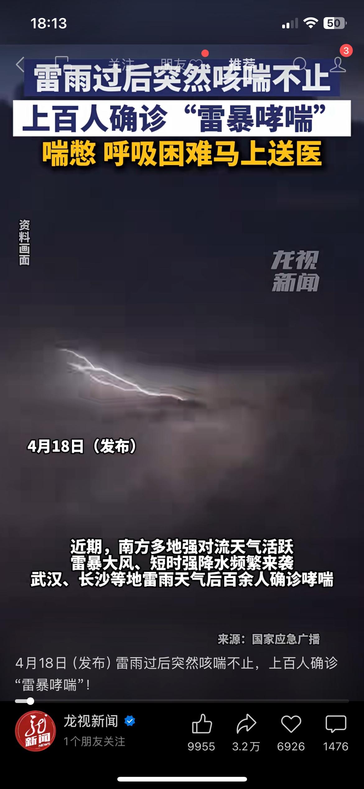 雷雨天过后有人突然喘不上气,这种情况最近特别多