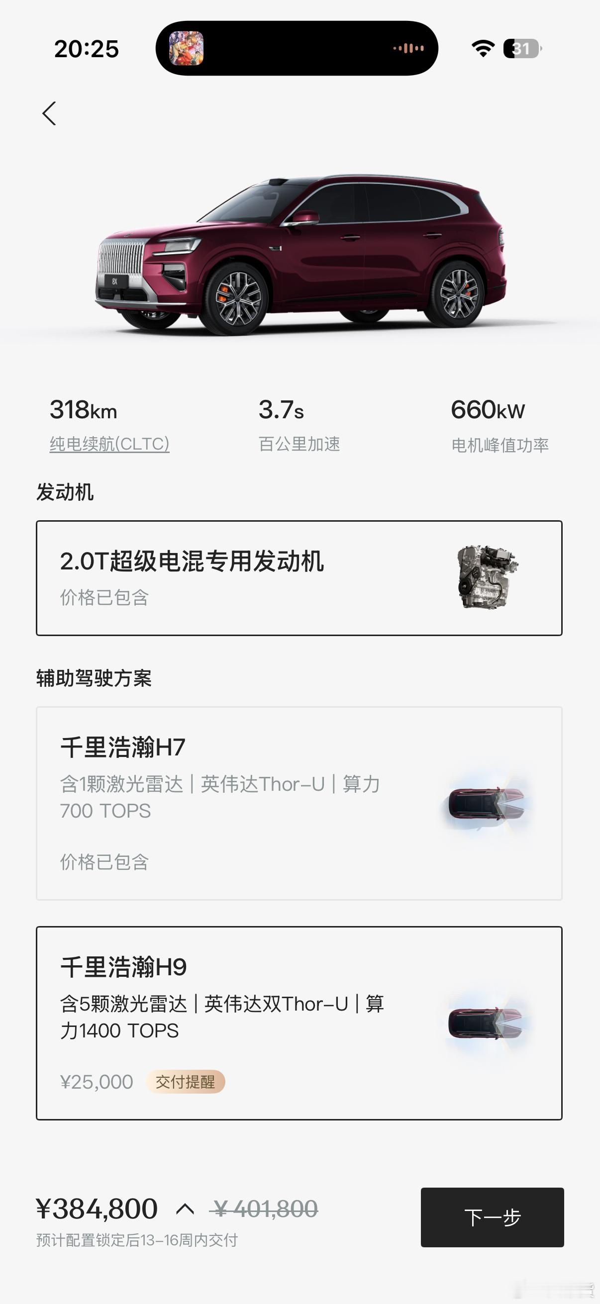 其实像极氪 H7/H9 这样就没问题选H7 2-5周交付选H9 13-16周交付
