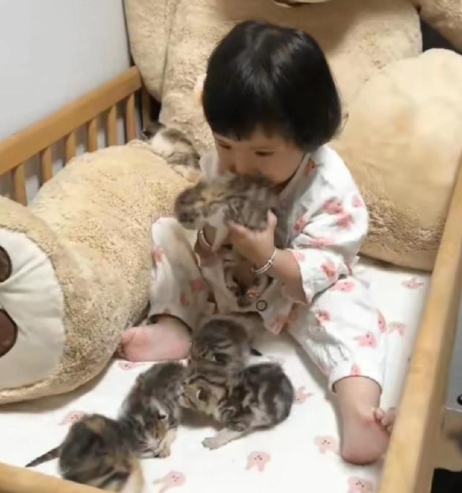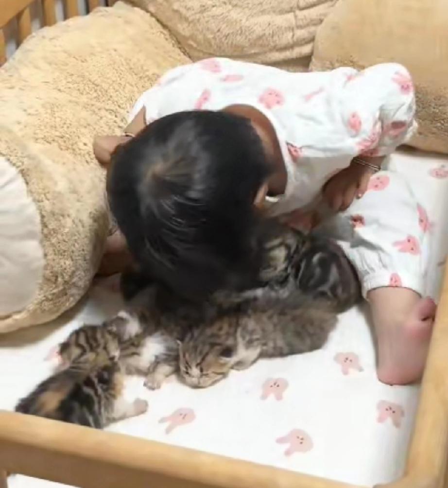 萌化了!闺女把大橘的小奶猫全薅床上亲,画面太暖