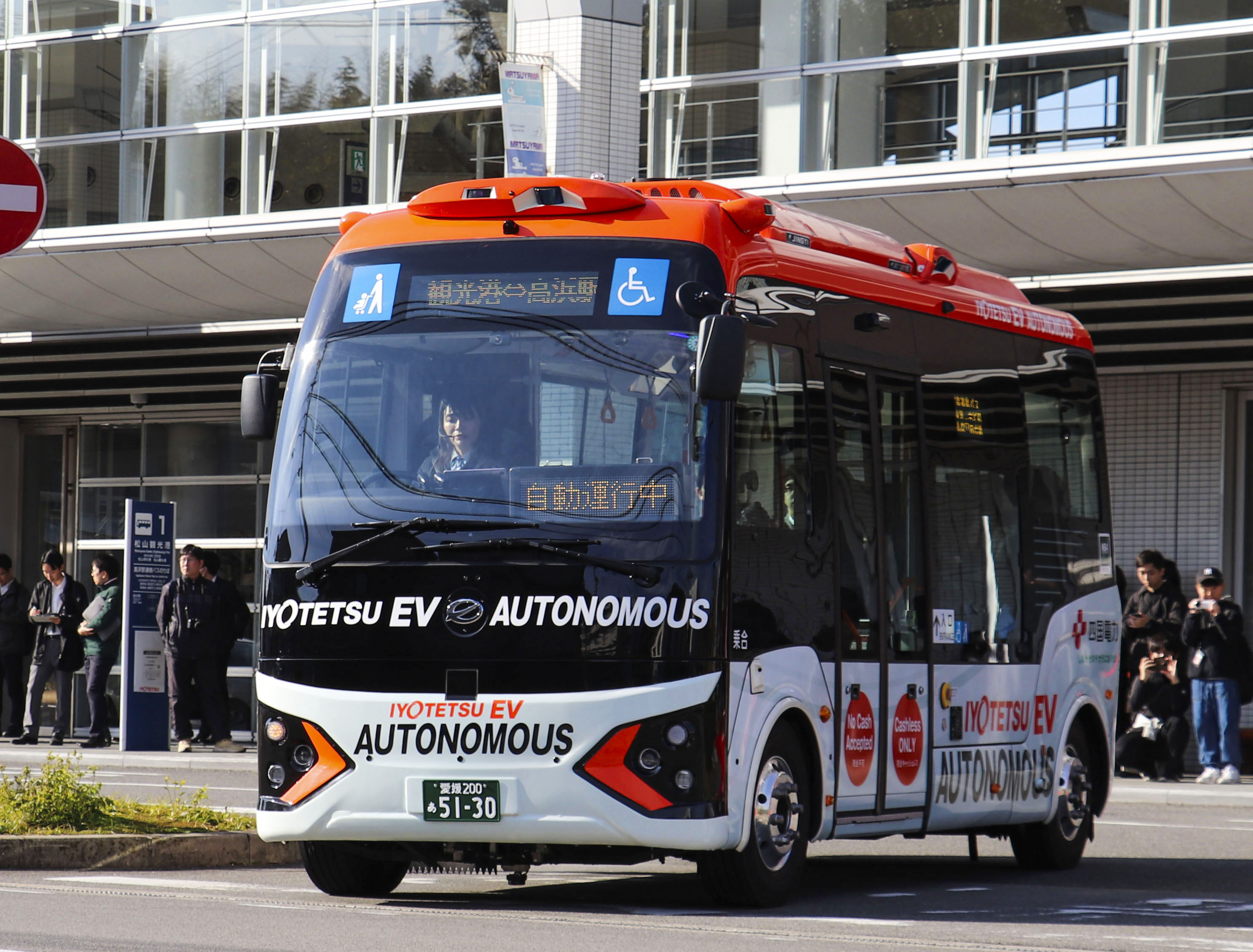 在日本爱媛县松山市运行的自动驾驶小巴东方IC