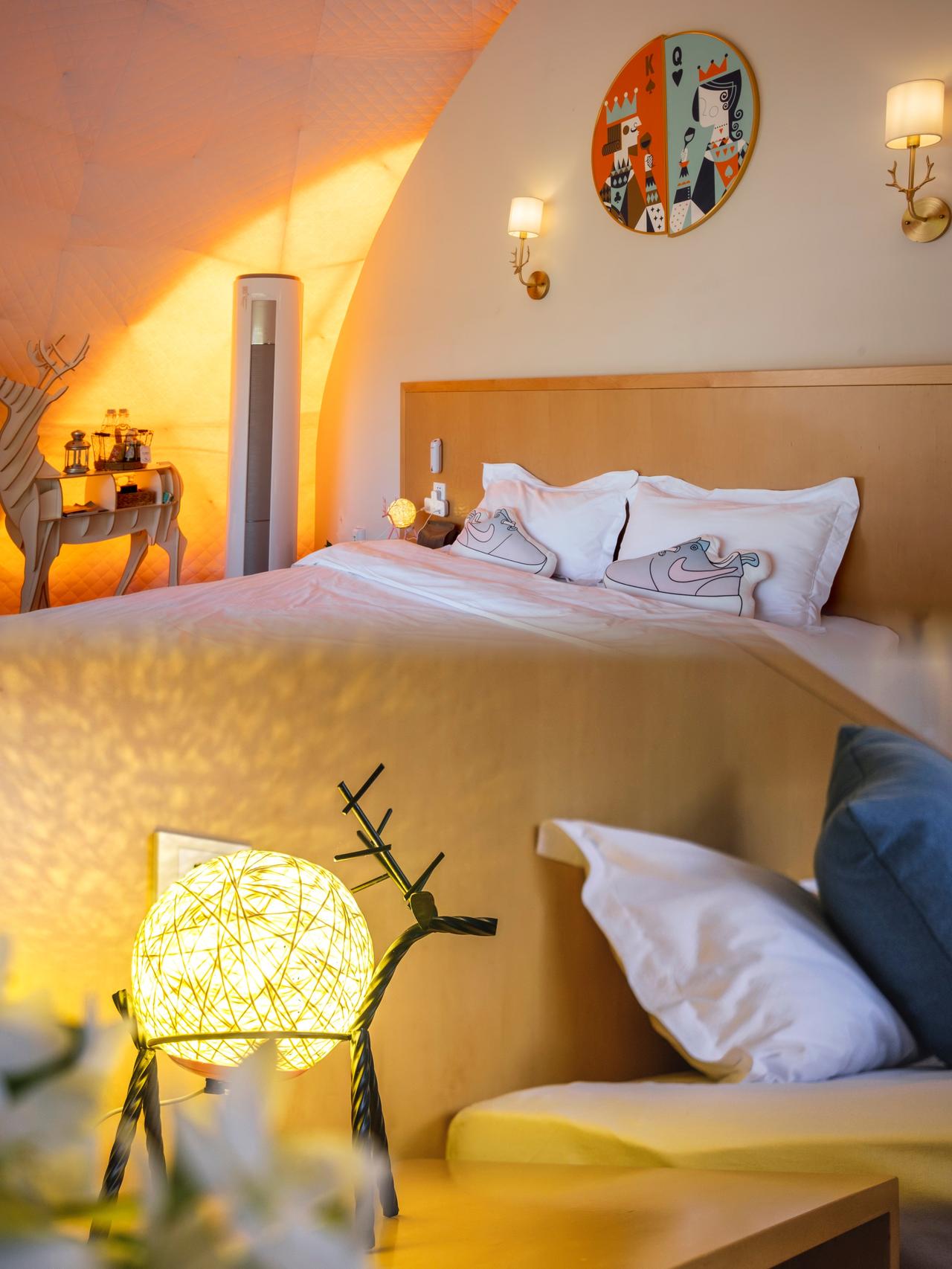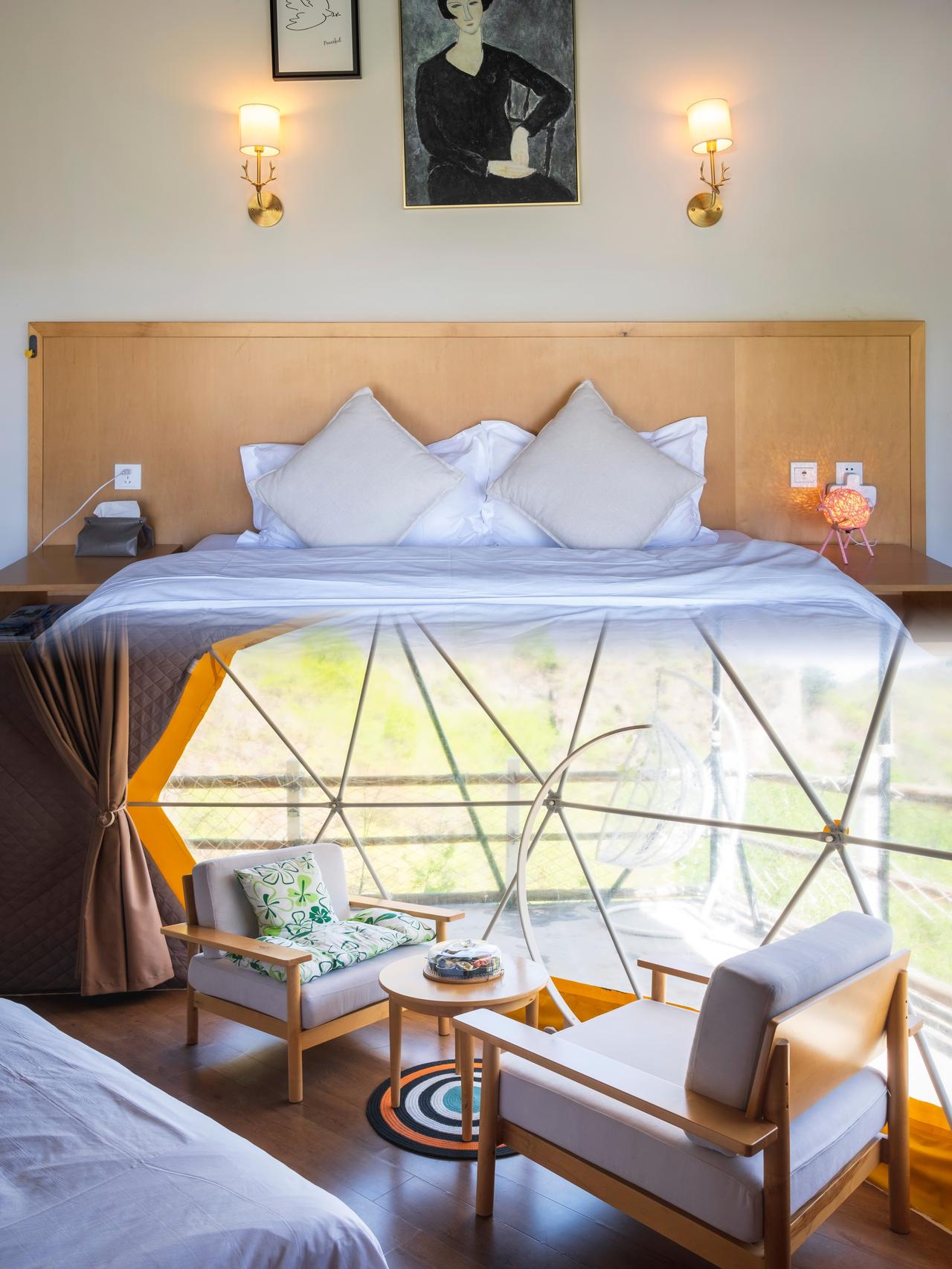 住宿方面有五种不同风格可选,我们选了孩子心心念念的高山泡泡屋。它矗立在海拔600米的山巅,糖果色外观超级梦幻。早晨迎接北京第一缕阳光,晚上躺着就能看银河,耳边环绕着虫鸣鸟叫,仿佛住在云端,尽享野趣。