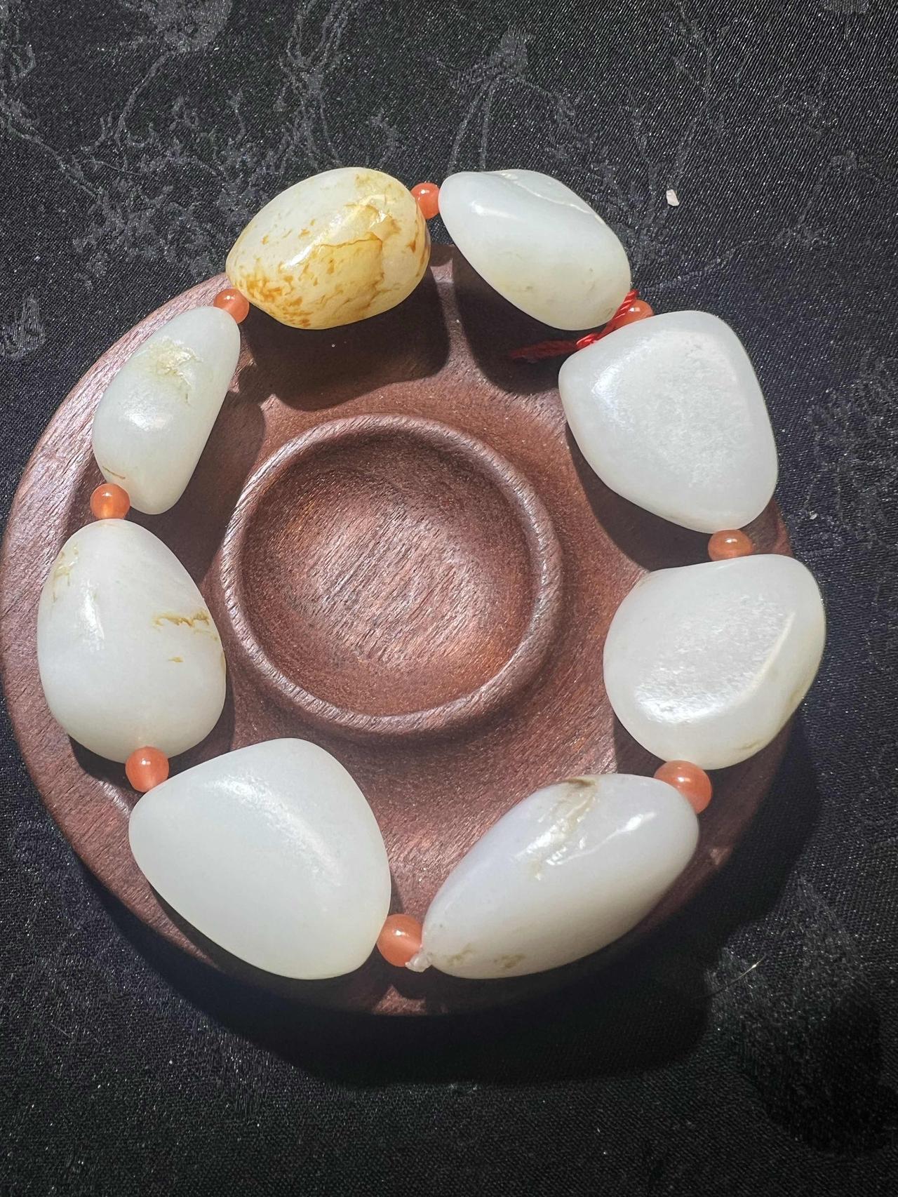 第一种是山料。这种料刚开采出来时,其表皮矿料的形态和恐龙蛋很像。要是去博物馆看过恐龙蛋,就知道它大概有多大了,一块一块的,就如同恐龙蛋的模样。这种山料颜色多样,有白色的,有带点青花的,还有带点糖色的。