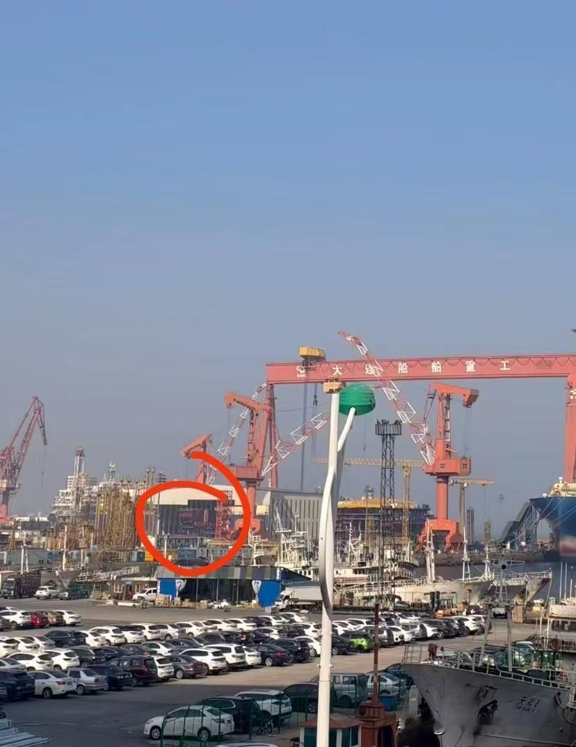 最新糊图 舰体已基本成型,甲板尚未铺设,进度接近70%。舰体水线长超320米、