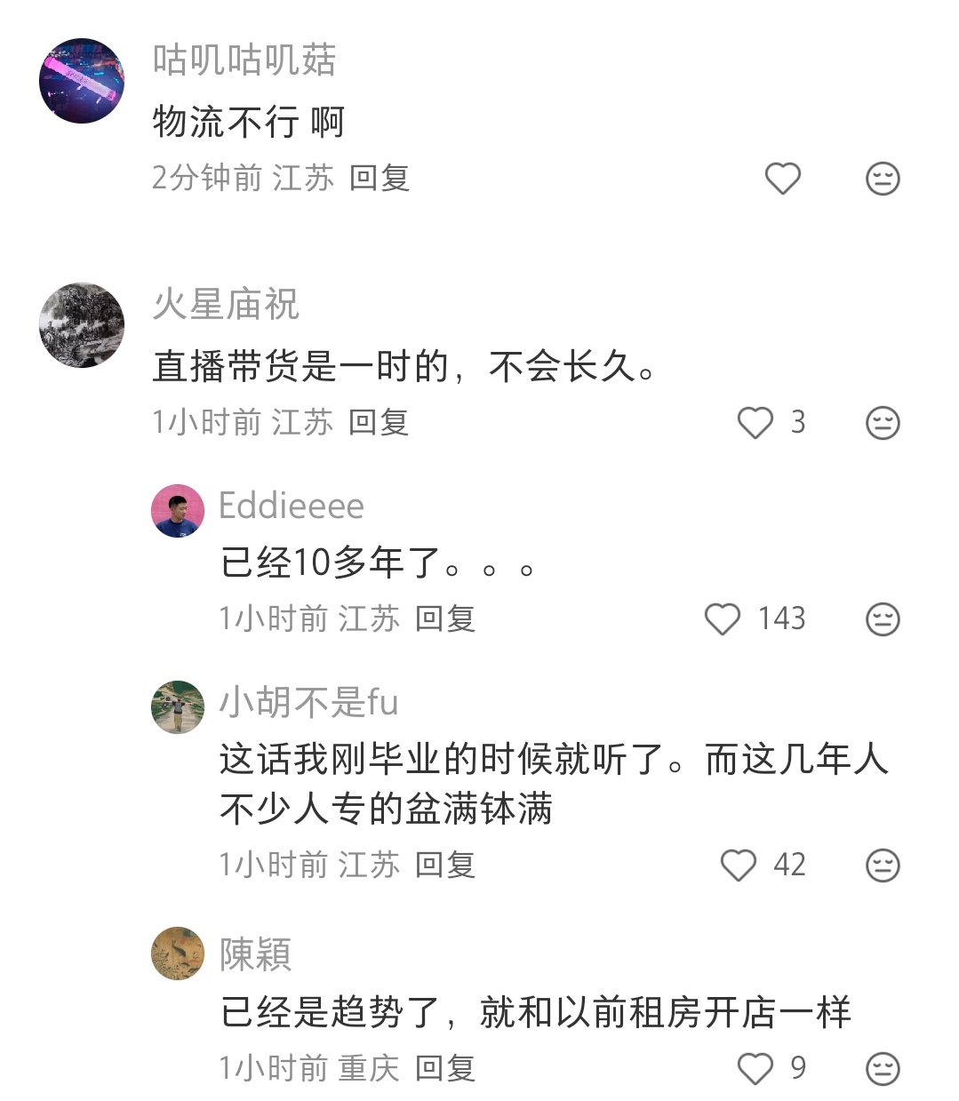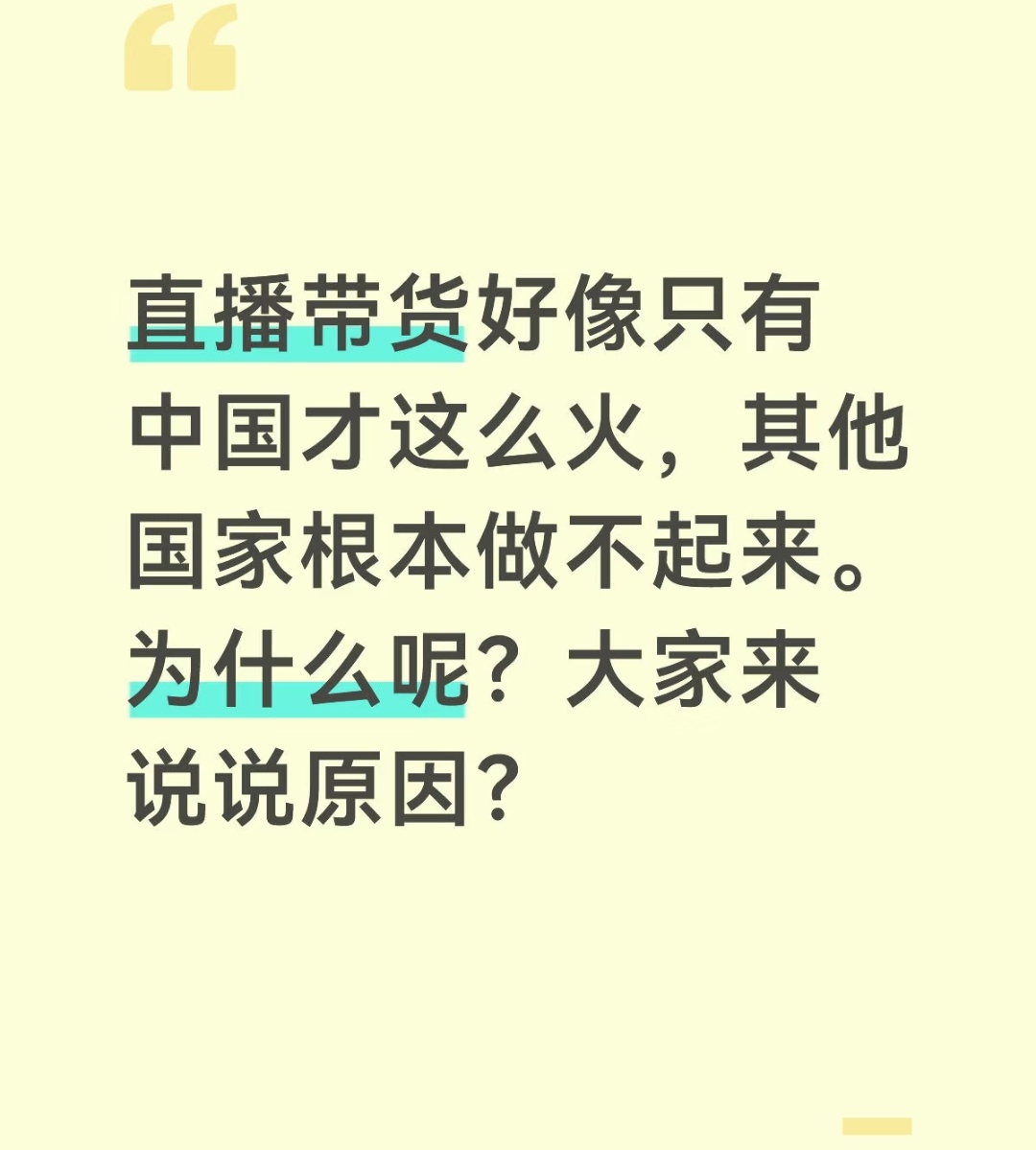 很多原因吧,价格原因,产业链不成熟,快递业务不成熟。也可能他们大部分都像我们一部分没耐心看直播的人一样,我是真的没耐心看直播