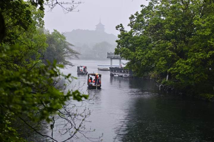 橙友“吧逗”:暮春谷雨,西湖泛舟。风是软的,雨是润的,船是慢的,连时光都变得温柔起来。