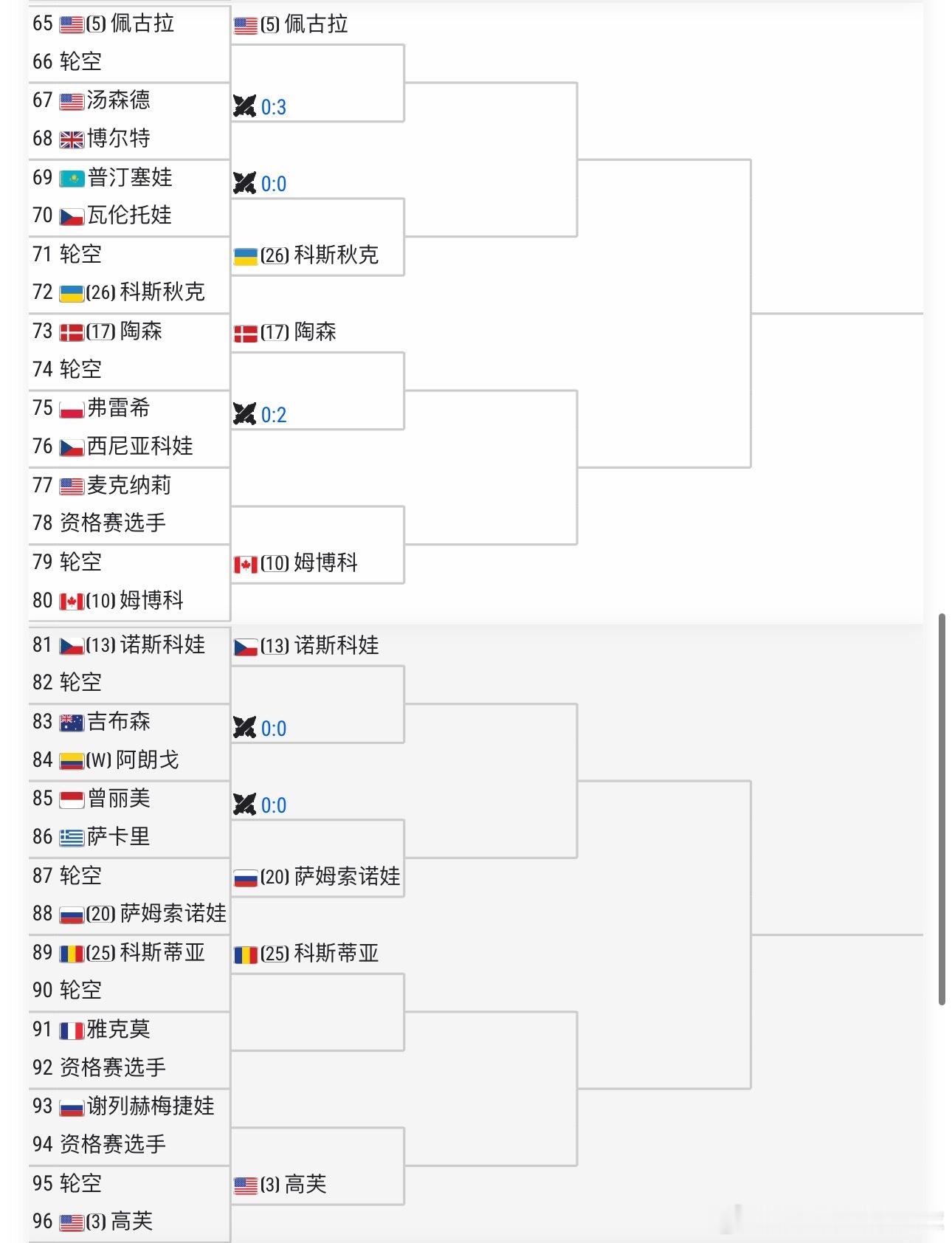 【5】佩古拉🇺🇸vs【3】高芙🇺🇸【2】莱巴金娜🇰🇿vs【6】阿尼西莫娃🇺🇸
