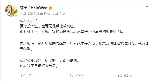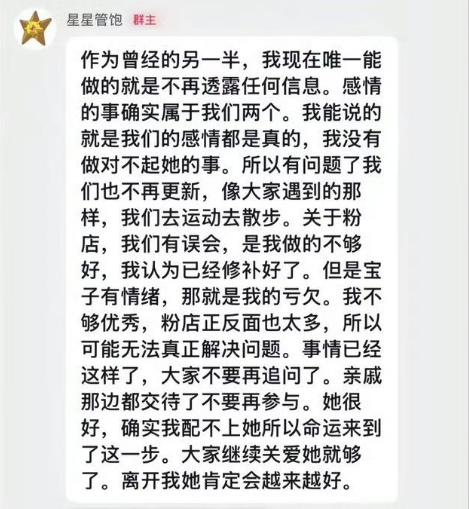 从猪宝子男友在粉丝群里说的信息来看,两个人分手的起因大概率就是合开的粉店,这个粉店是猪宝子和男友星星合开的,但男方家里的亲戚介入得太深了,男方可能认为粉店是自己家里的,或者是男方家族的,所以粉店的经营主导权都没有尊重女方,最终导致了女方的不满,双方的问题可能在半年之前就已经爆发了。