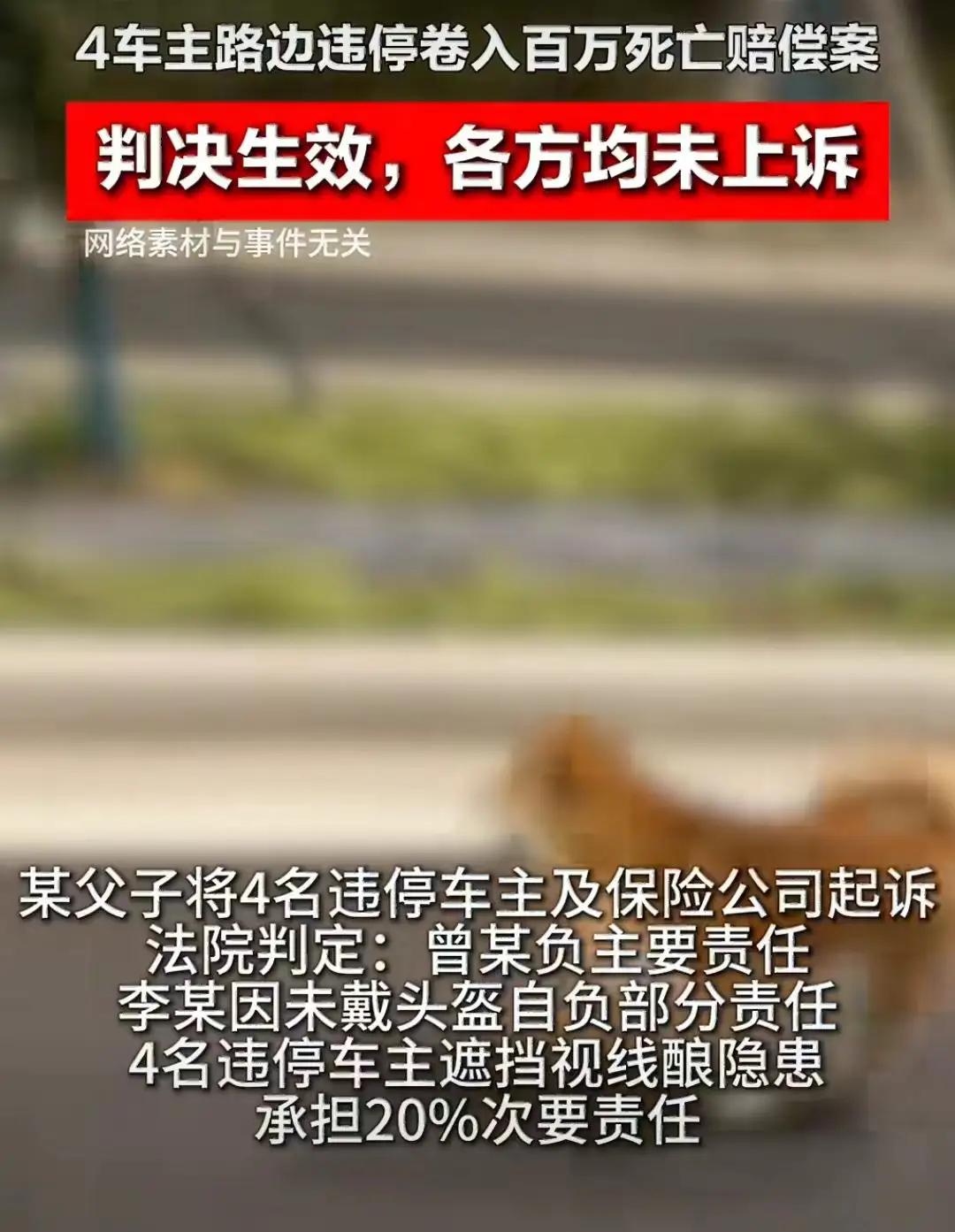 最关键的是,四名违停车主因遮挡视线、埋下安全隐患,被判定共同承担 20% 的次要责任。