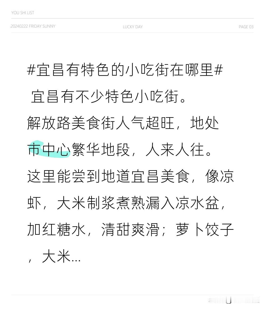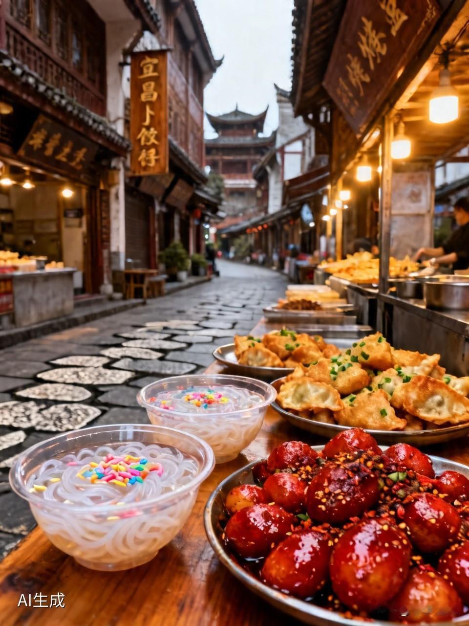 解放路美食街人气超旺,地处市中心繁华地段,人来人往。这里能尝到地道宜昌美食,像凉虾,大米制浆煮熟漏入凉水盆,加红糖水,清甜爽滑;萝卜饺子,大米和黄豆浆包着腌制萝卜丝炸至金黄,外酥里嫩。还有炕土豆、卤虾、炸串等,章鱼足个头大且入味弹牙,10元中串、15元大串。