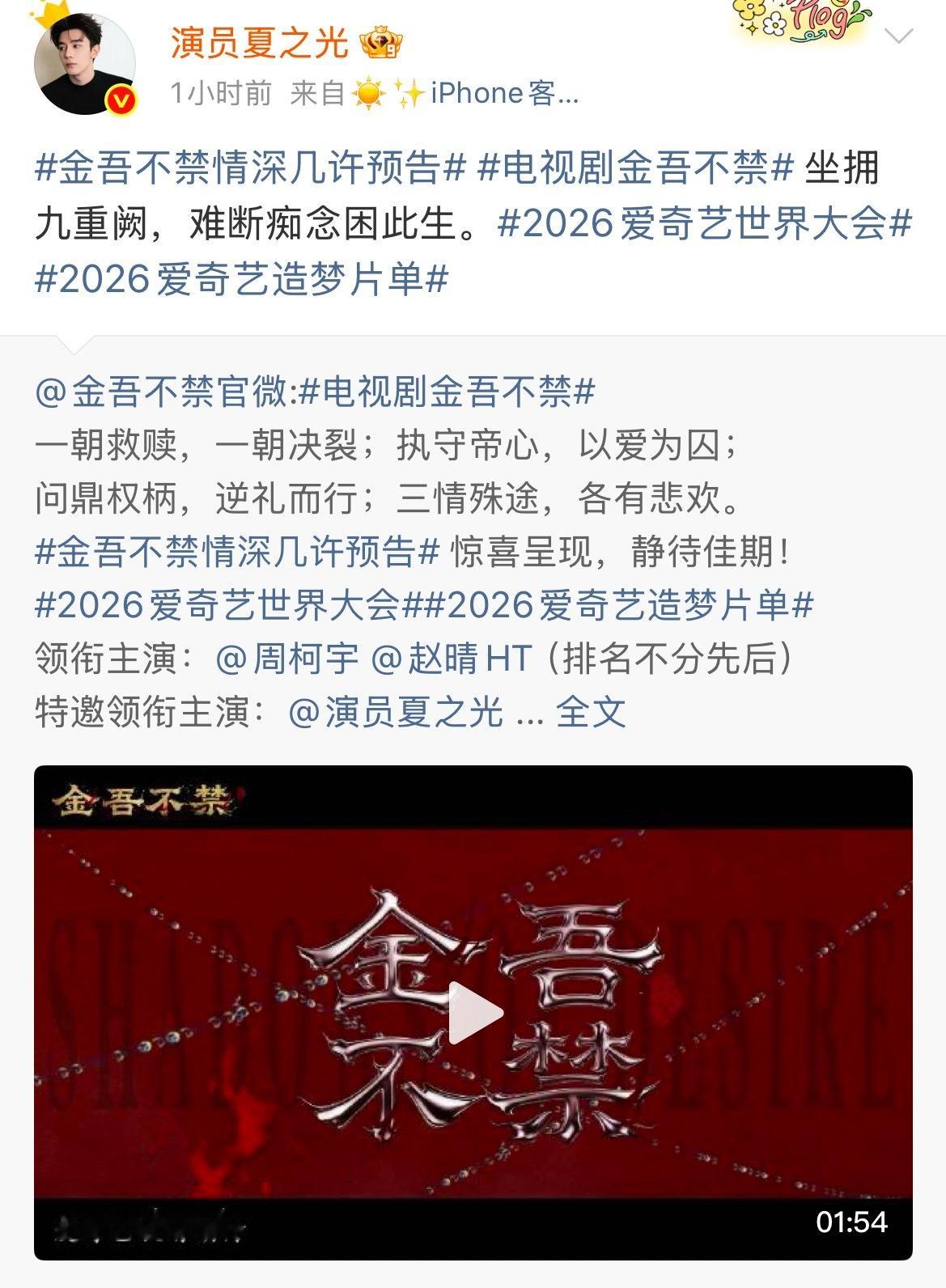 夏之光宣完你的宣你的 演员夏之光营业密度超标啦!前脚宣新剧《金吾不禁》预告,饰演君临天下的李明书;后脚新电影《森中有林》终极海报释出,化身执着追寻的王放。从古装朝堂到现实山林,两个截然不同的角色同时亮相,剧影双线齐发。期待演员夏之光的新角色