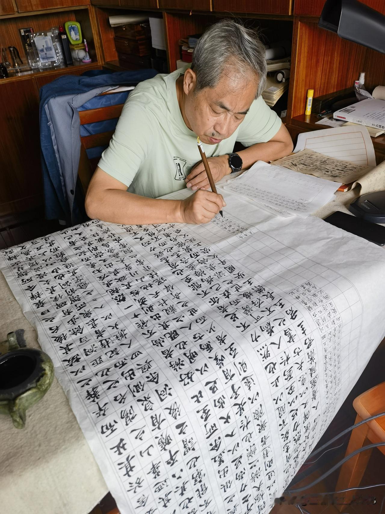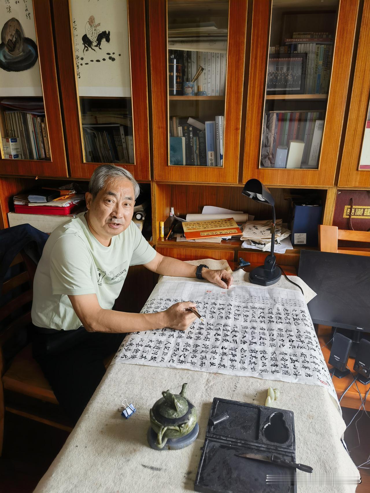 三省斋铭 山不厌高,有仙则名,海不厌深,有龙则灵,斯是斗室,惟吾德馨! 探古玺倔巧,摩大家风采。谈笑有鸿儒,往来皆知己。可以闻墨香,抄金经。听韶乐之悦耳,赏古今之碑帖。诗城三省斋,洞庭岳阳楼。 友皆云:此斋可乐!