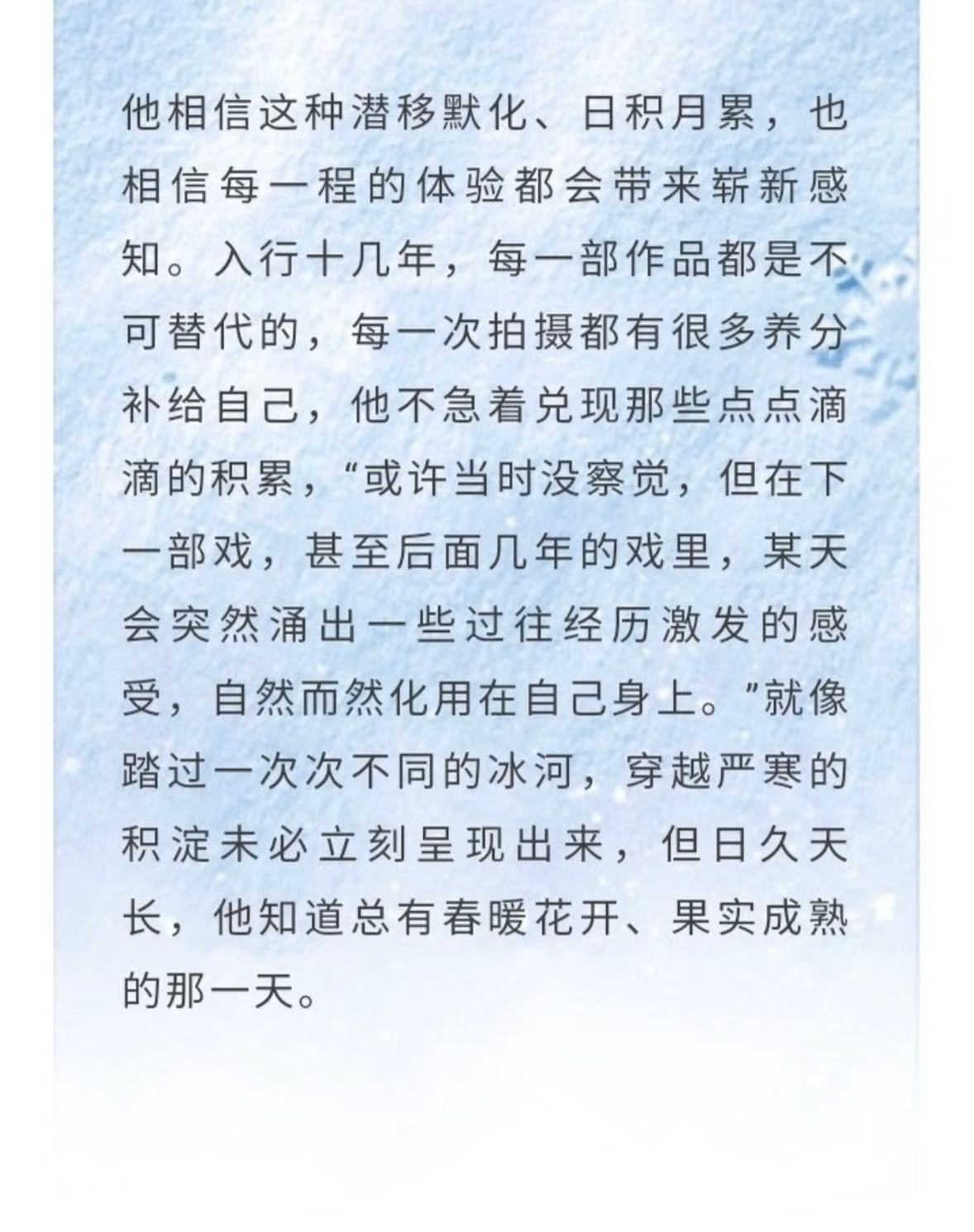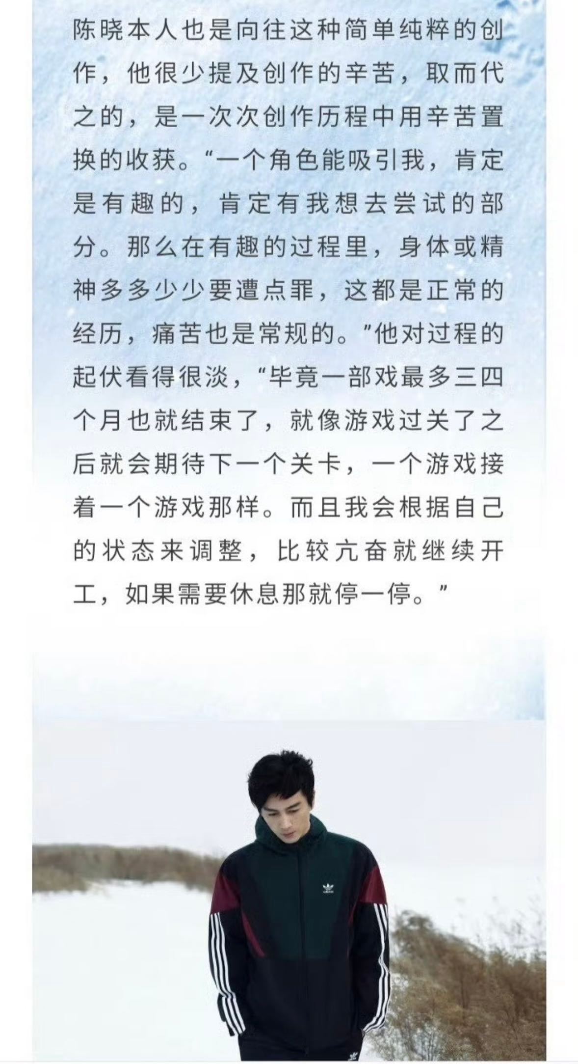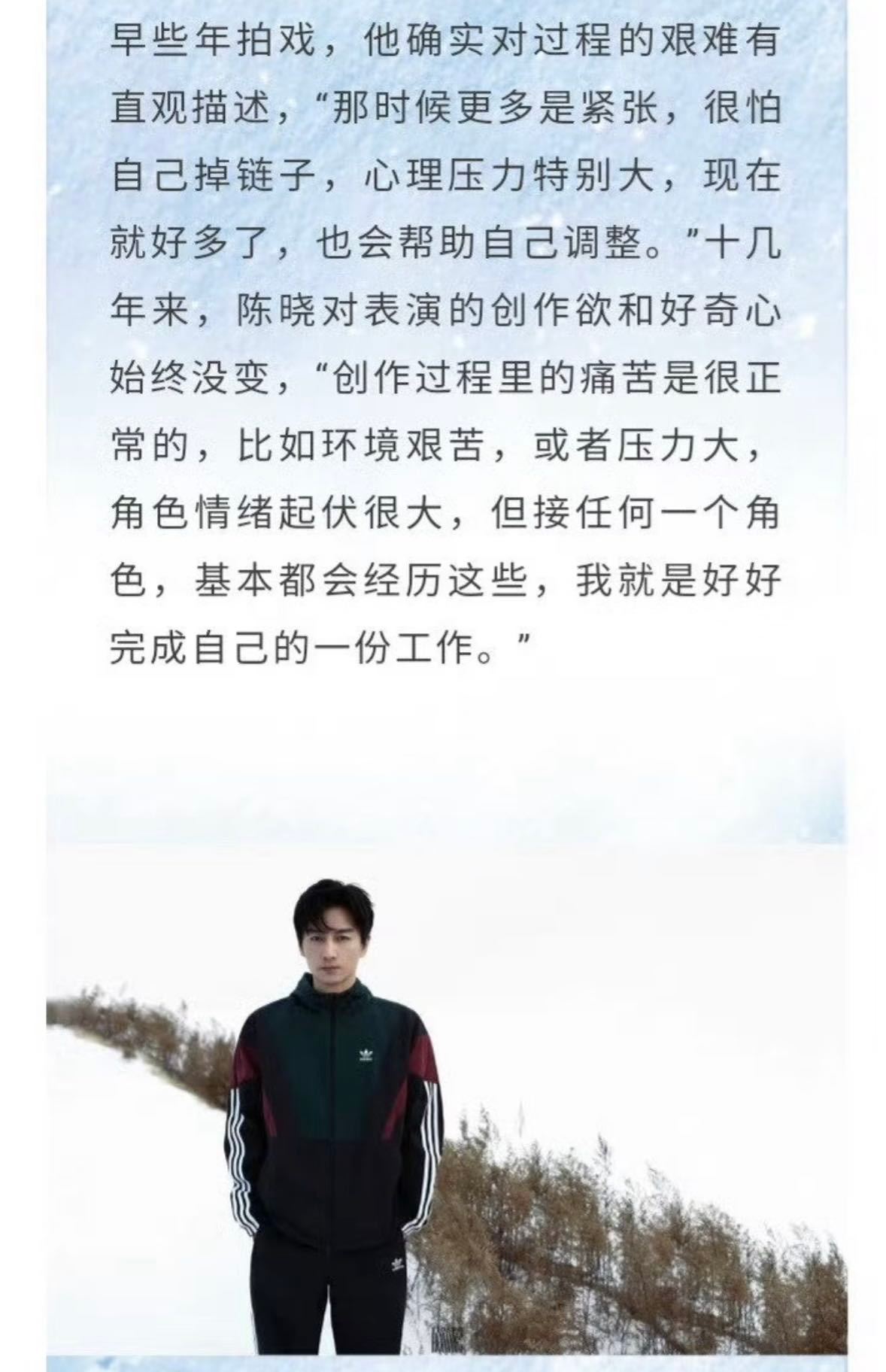 将过程起伏看得很淡,把遭罪看作常规,将每个角色看作纯粹的创作去认真对待踏踏实实去演戏,认认真真地琢磨角色,陈晓身上很好地展现出一个演员厚积薄发、潜移默化的过程。从那年花开月正圆到大生意人,从冰雨火到人生之路,演艺生涯不断挑战一个又一个高峰,也为观众送来一个又一个好角色。路变得更开阔,步子也更加稳健。去年的大生意人一举创下央视古装史冠纪录,观众口碑好评如潮,现在更是能听到期待他获白玉兰视帝提名的呼声。咱就该知道了,品质好演员也迟早来到春暖花开的一天😌