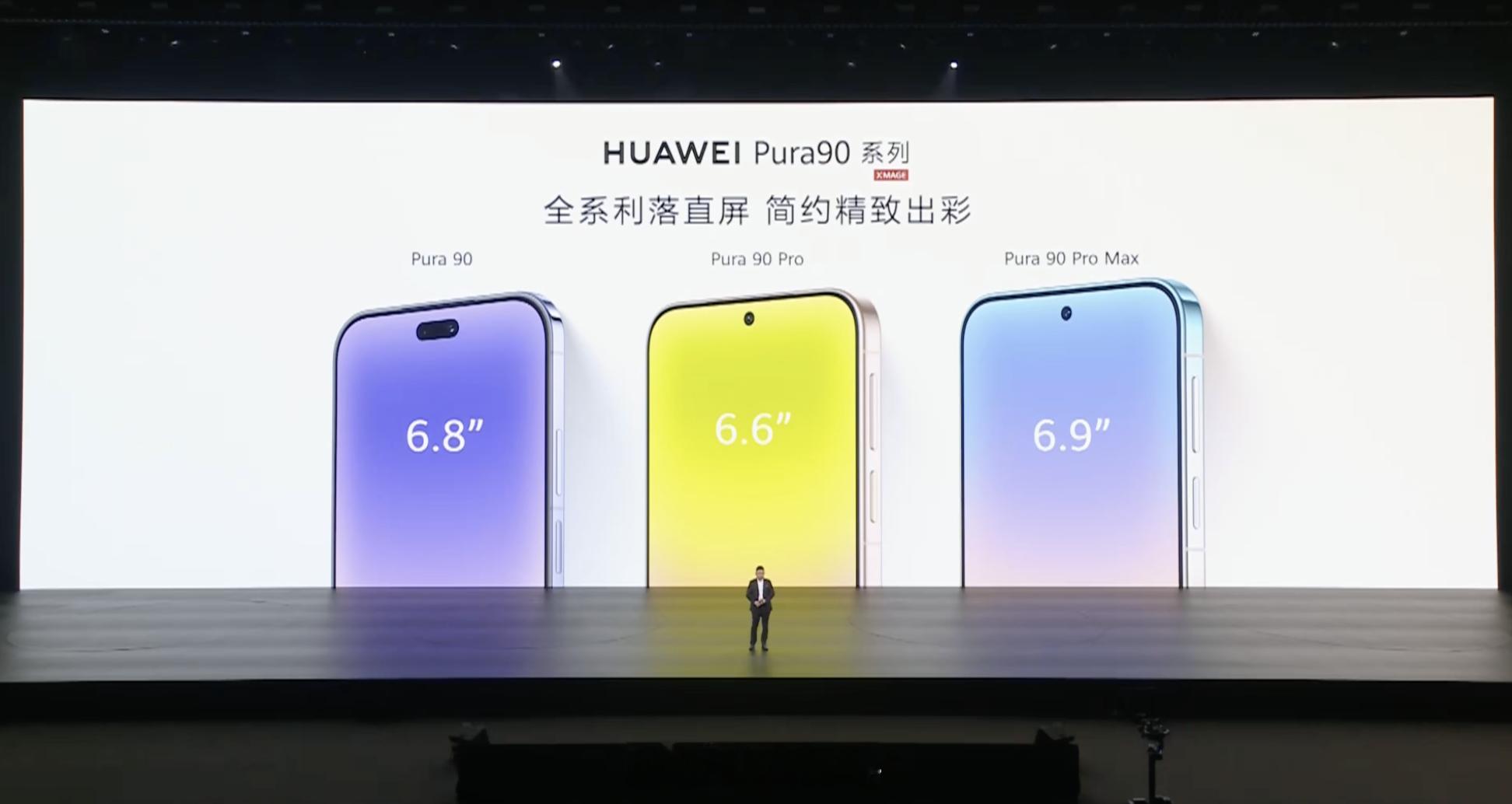 华为Pura90系列三款型号三个尺寸全系直屏Pura 90:6.8英寸Pura 90 Pro:6.6英寸Pura 90 Pro Max:6.9英寸