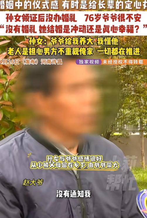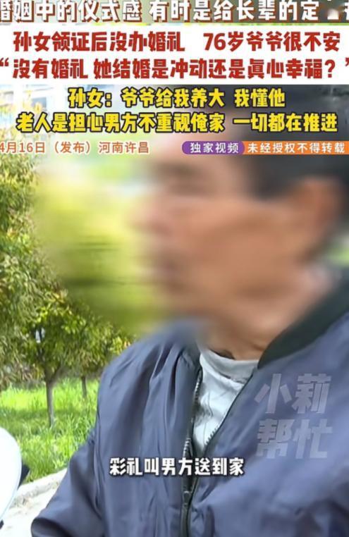 良苦用心!河南许昌,孙女领证后,没办婚礼,76岁爷爷不安地说:孙女领证没通知我,气死我了!让男方把彩礼送到家,叫我看看,分文不要。毕竟,孙女我养活了她18年。孙女解释:爷爷气的是男方不作为。爷爷听后直抹眼泪,网友:傻姑娘,爷爷他是怕男方不重视你啊!