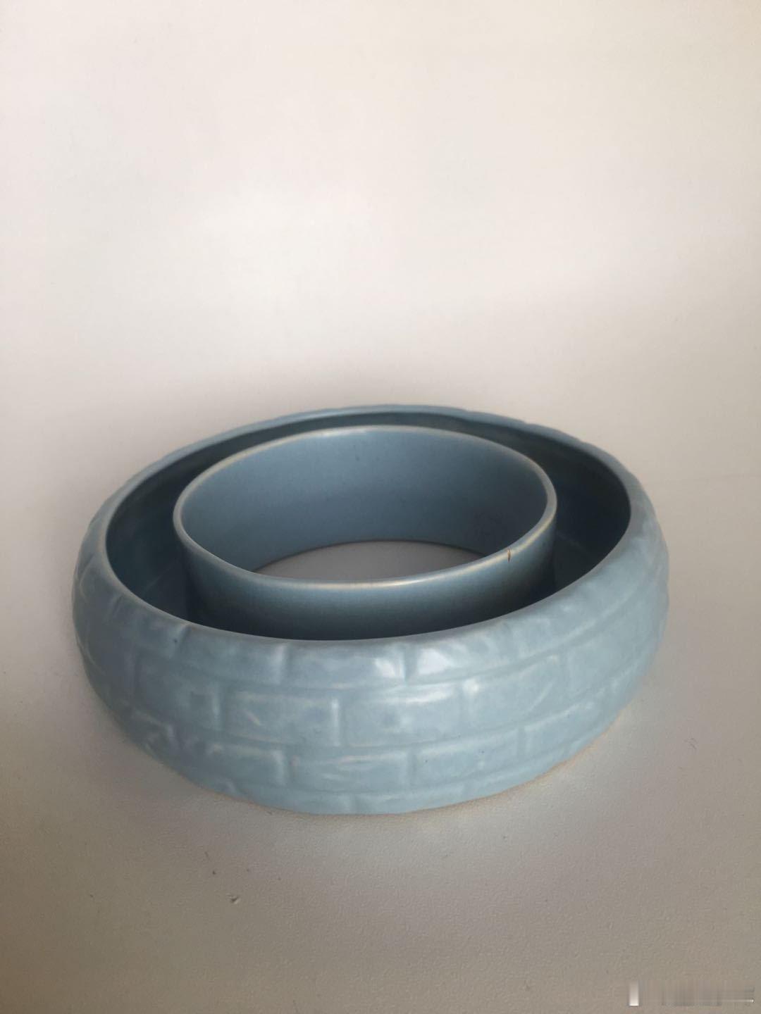 每周鉴赏收藏精品之北宋汝窑天青釉瓮口洗 汝窑,现在国内瓷器收藏领域中最混乱不堪的品种,没有之一。我们最初想不提汝窑两个字,就说天青釉,让懂者自懂就行了。省的让人说是什么什么的。但后来,还是觉得应该坦然面对现实。说说我们对汝窑的理解和看法。 汝窑的乱象,首先是“汝窑”这个概念的内涵范围不明晰。这不是现在才有现象。清宫造办处当时用了两个概念,一个是“汝窑”,指他们能够确定是传世汝窑的瓷器;另一个是“雨过天青色”,泛指类汝窑或仿汝窑的瓷器。当然现在也有用“汝官窑”和“河南青瓷”来区分的。 乱象之二就是假货太多。 我们所称的汝窑,包括天青釉、粉青釉和天蓝釉三种。看真的主要理由:天青釉汝窑要看油酥光,粉青釉汝窑要看釉层的薄厚,天蓝釉汝窑要看釉层中的颗粒。 天青釉汝窑的油酥光,比北宋官窑月白釉瓷器的油酥光要弱,比现代仿品中没有用化学涂剂的要强。怎么看呢?光线环境是关键!在适当的光线下看油酥光。 天青釉瓷器,如果不是油酥光,无论是光泽明亮的,还是哑光或无光泽的,肯定不是北宋时期被朝廷选中的汝窑。我们就不称其为汝窑了。 本件天青釉瓮口洗另一个看真的理由,就是胎体生烧偶然形成的细裂痕,天青釉层覆盖后形成的色差。在北宋钧窑就叫蚯蚓走泥纹。这种痕迹在生烧瓷器都可能出现。