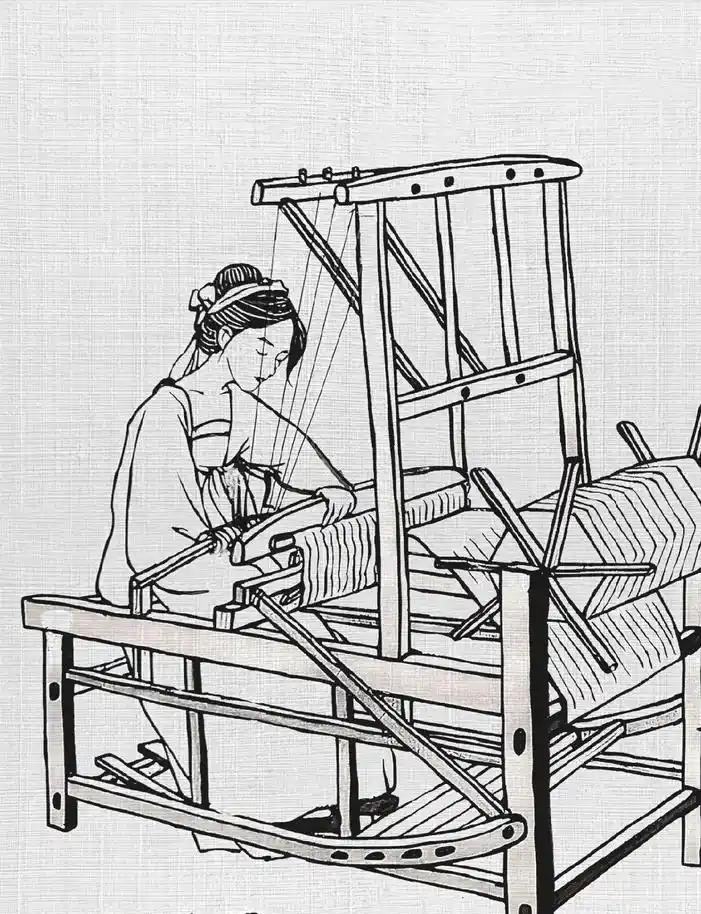 纺好纱线后,便进入织布环节,古人的织布工具从简单的腰机逐步发展为复杂的提花机,织造技艺不断精进。