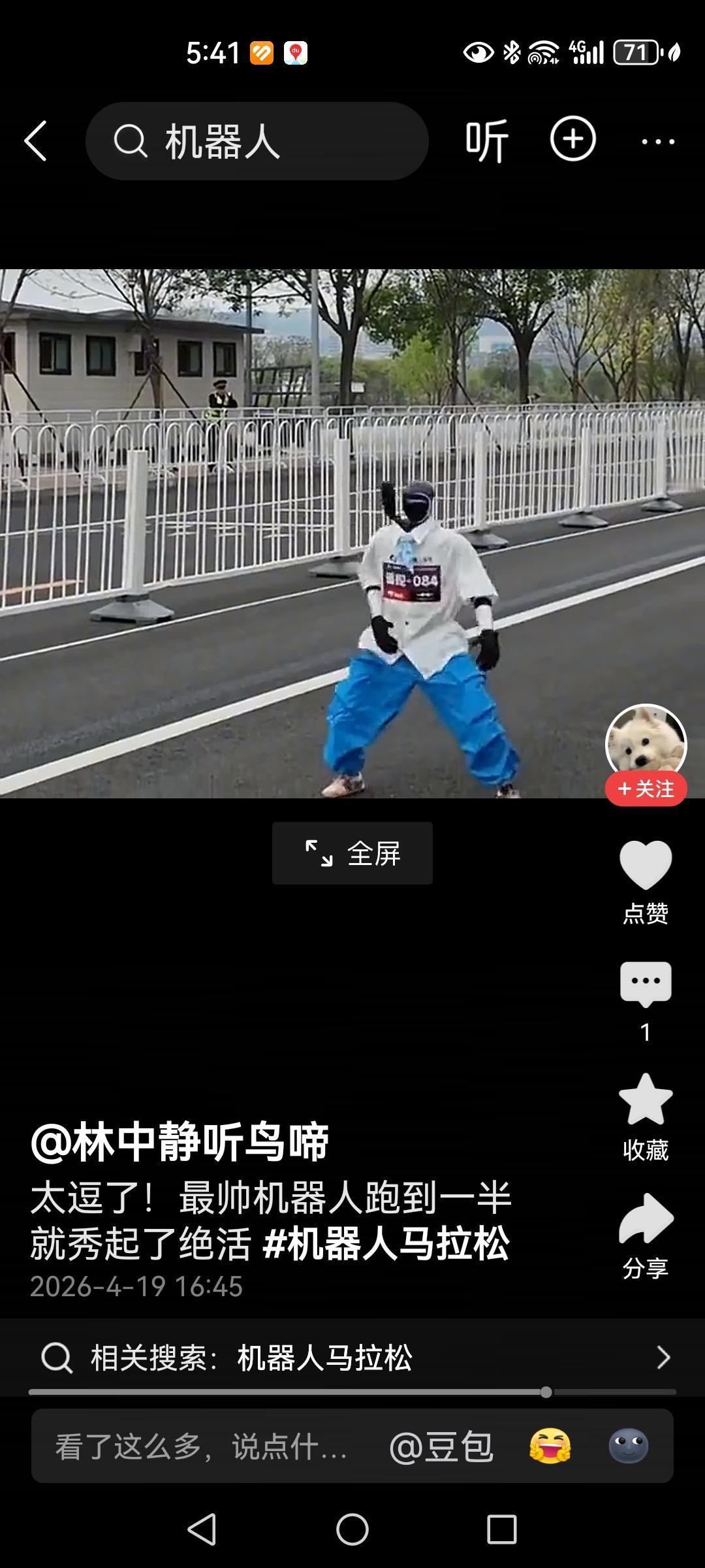 机器人比赛跑步,然后看到一个特别喜欢卖弄的机器人。这小子不像是来参加比赛的,而是来炫耀的,在观众的欢呼声中,他各种动作都来了一遍,请问这个机器人是哪个公司生产的?一个非常有自信的机器人,长得嘛也很帅,就是有点太得瑟。