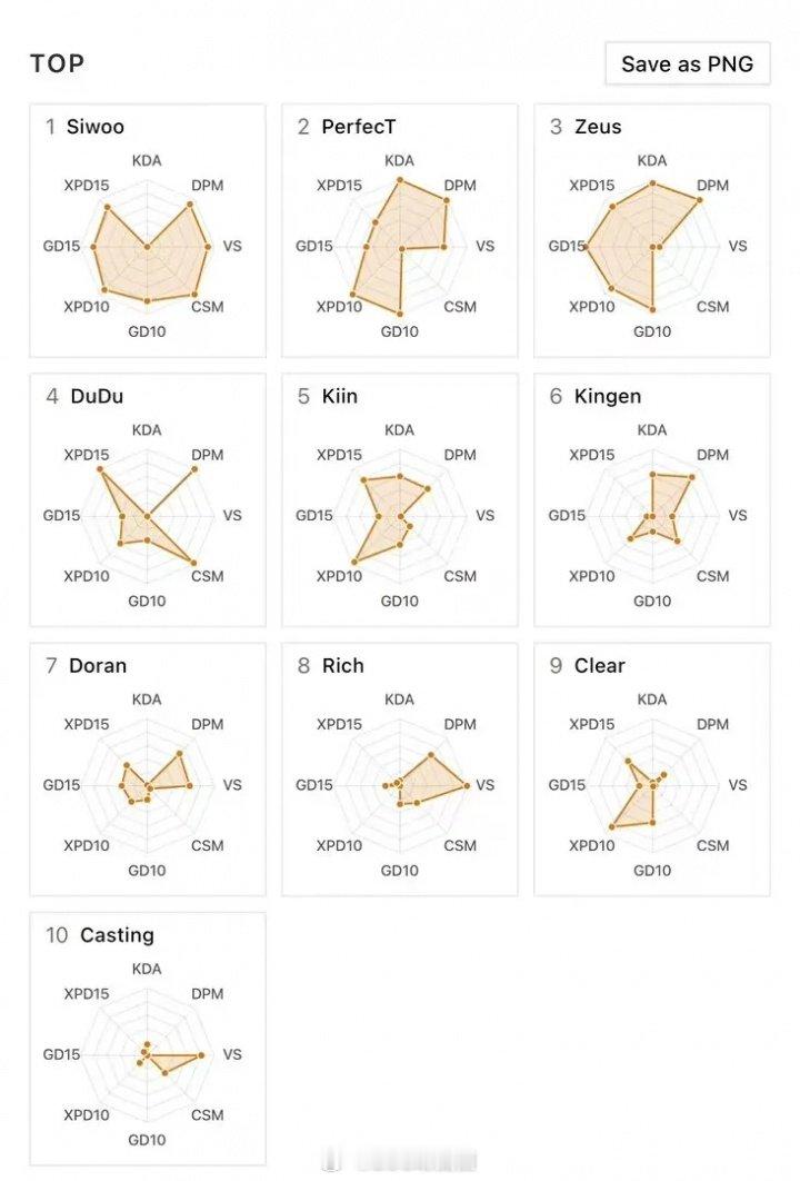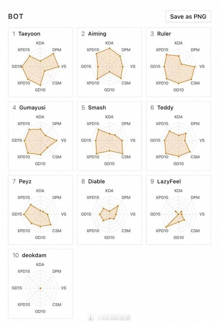近日外网网友分享了LCK第三周的选手数据图,其中T1仅辅助选手Keria发挥较为出色,此前ShowMakr的数据图略显幽默,而更抽象的为deokdam,其数据图仅一个靶心!
