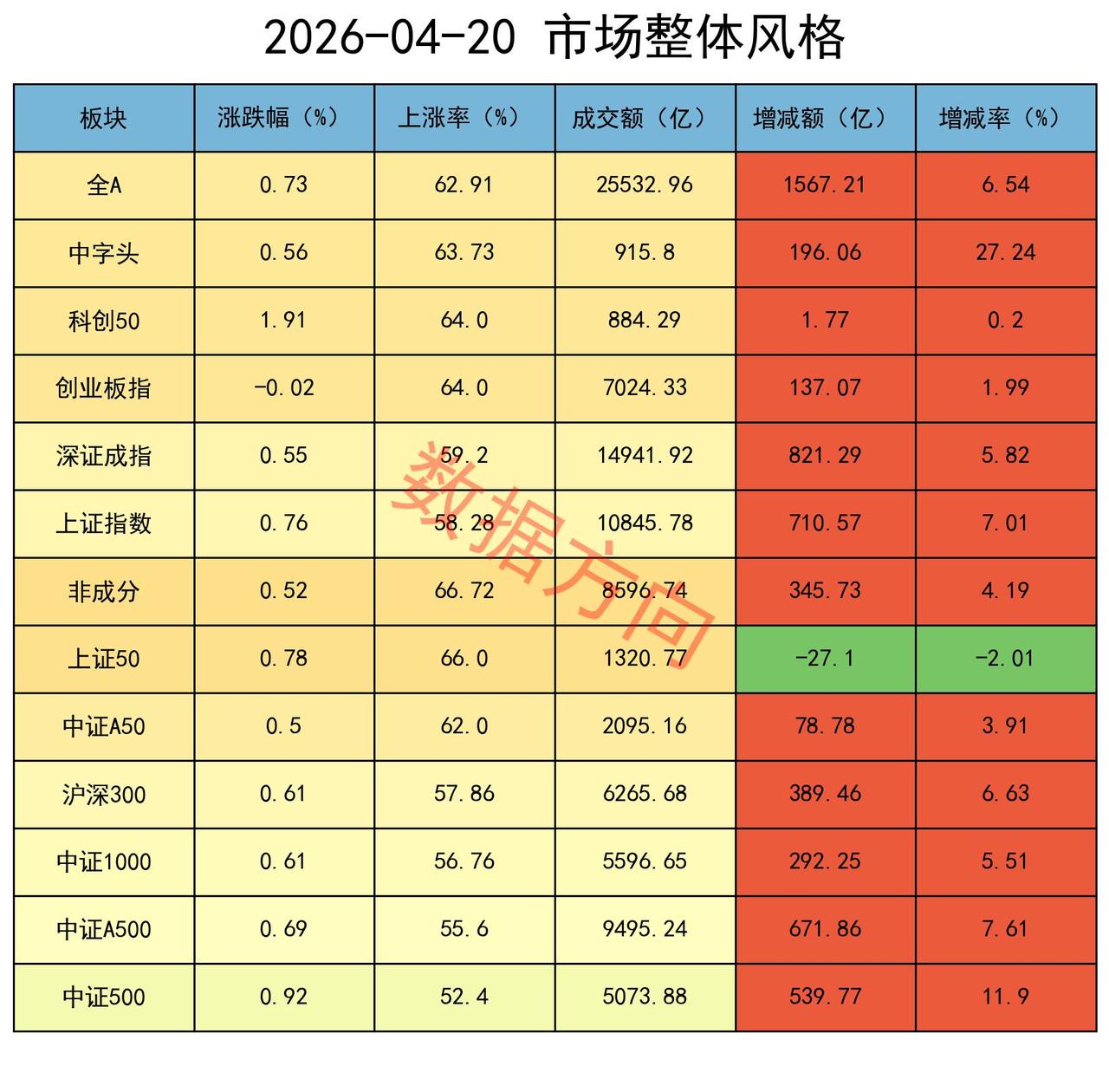 大盘全天放量上涨,商业航天、液冷、光纤等多个方向一起爆发,多数行业都飘红,个股上涨率63%,成交额较上周五放量7%。