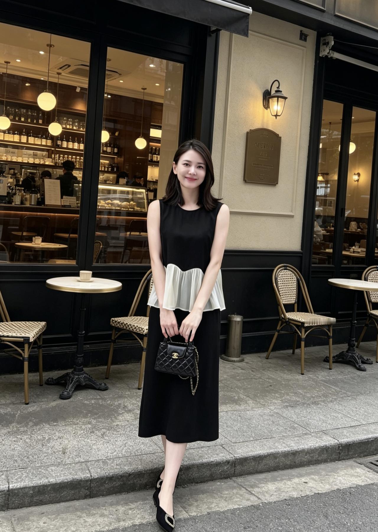 在街角不经意撞见的瞬间,才懂什么叫“自带氛围感”。她一身简约黑裙,被阳光衬得温柔又干净,手里拎着包,站在墙前笑起来的样子,没有半点刻意的修饰,却透着一种从容舒展的松弛感。