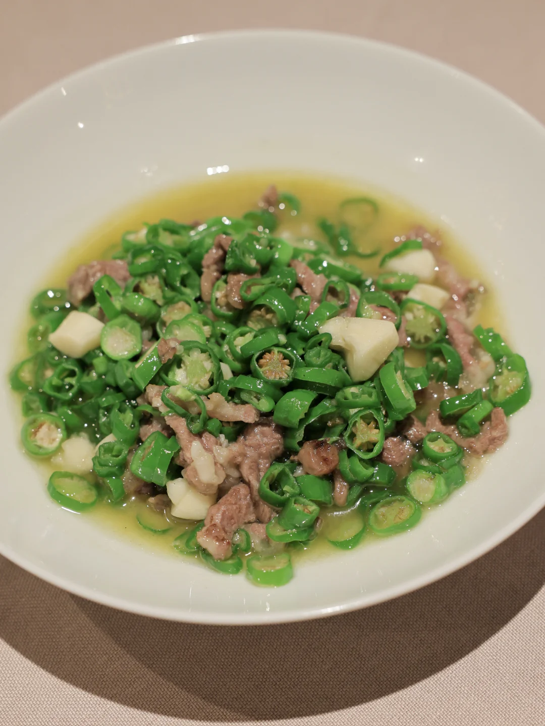 有点像青椒汆牛肉,但是牛肉部位用得很好,汤汁拌饭很好吃。