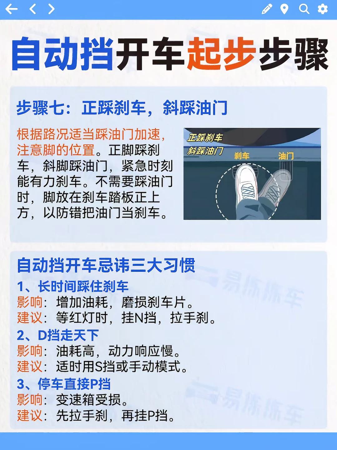 上车系好安全带后,第一件事就是用右脚踩住刹车。