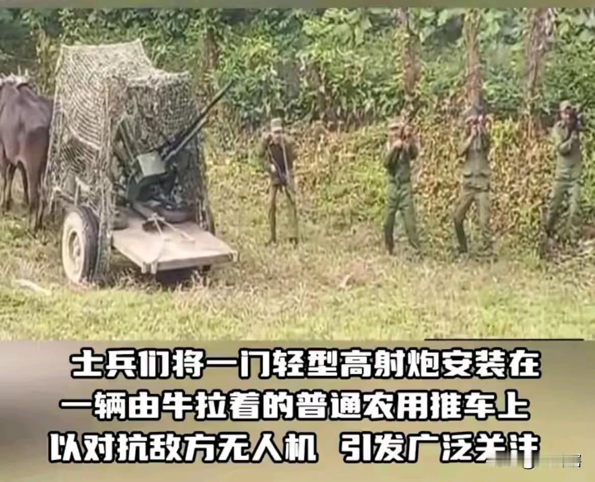 古巴军演是来搞笑的吧!太寒酸了。 士兵们将一门轻型高射炮安装在一辆由牛拉着的普通