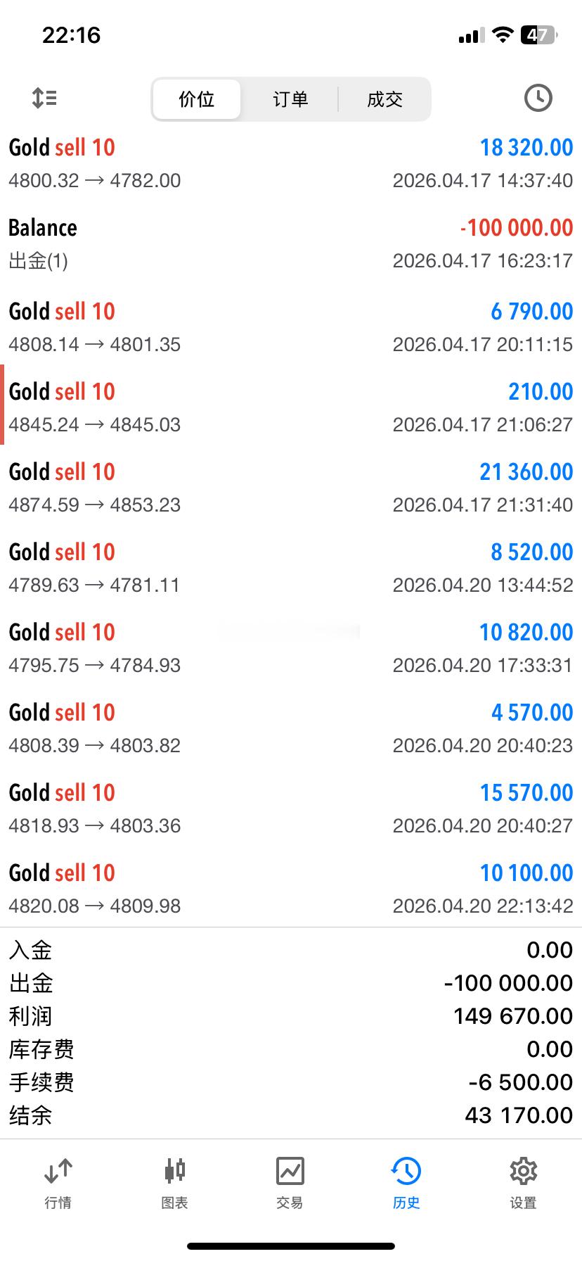 2026.4.20日操作4单,全胜,共收割690个点。不要被小事遮住视线,我们还有更大的世界。今天到此收工,晚安。黄金 金价 晚安