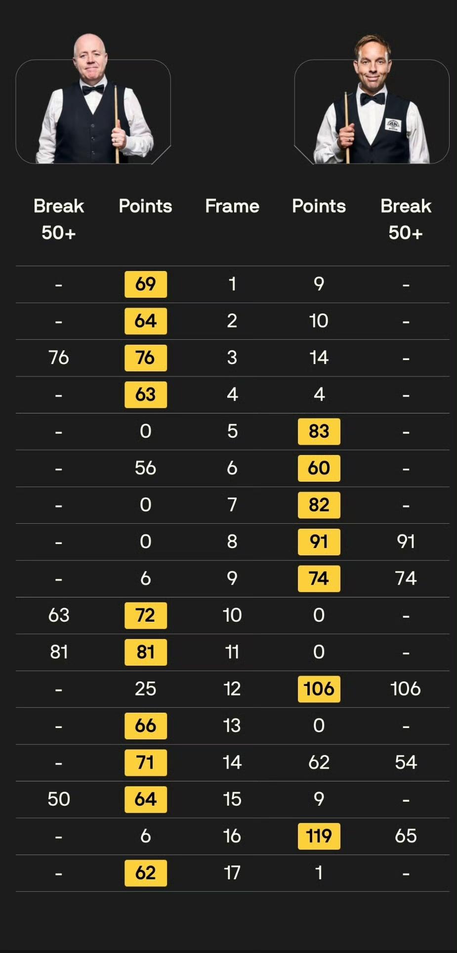 第二阶段卡特复归平凡,6-9被希金斯拿到赛点,虽然挽救一个赛点,但最终仍然7-10不敌巫师。
