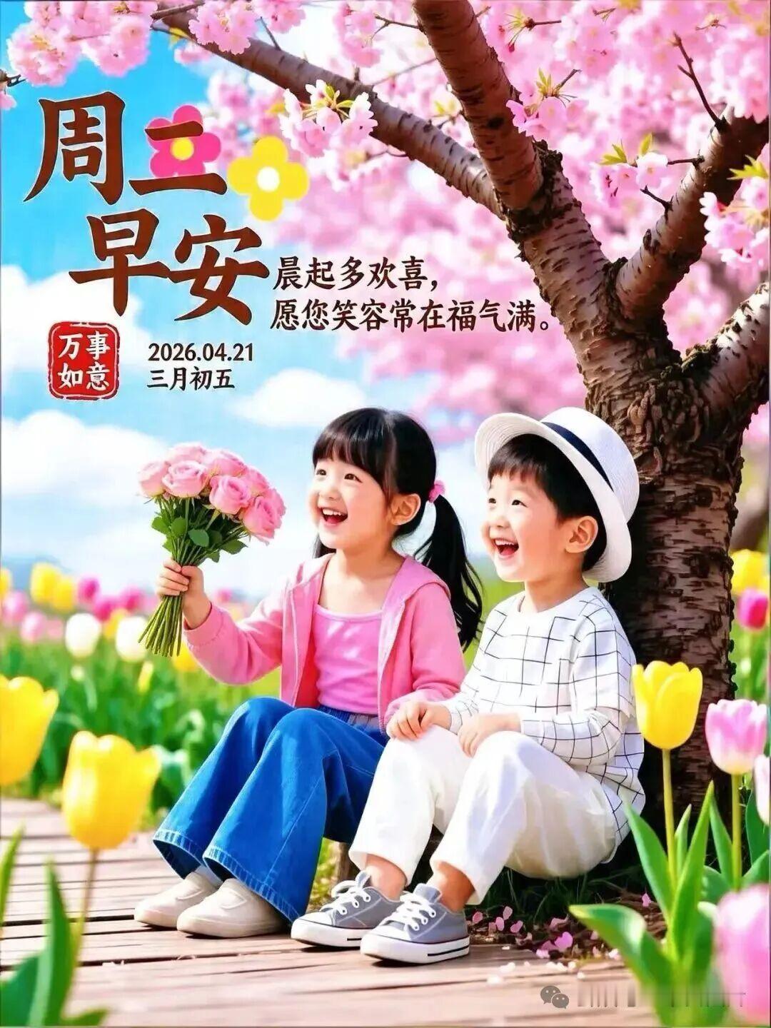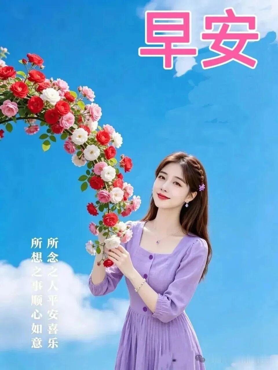 早安!春风送喜,花开吉祥。愿你鸿运大开,福气满满。以花开为序,赴美好之约;以顺遂
