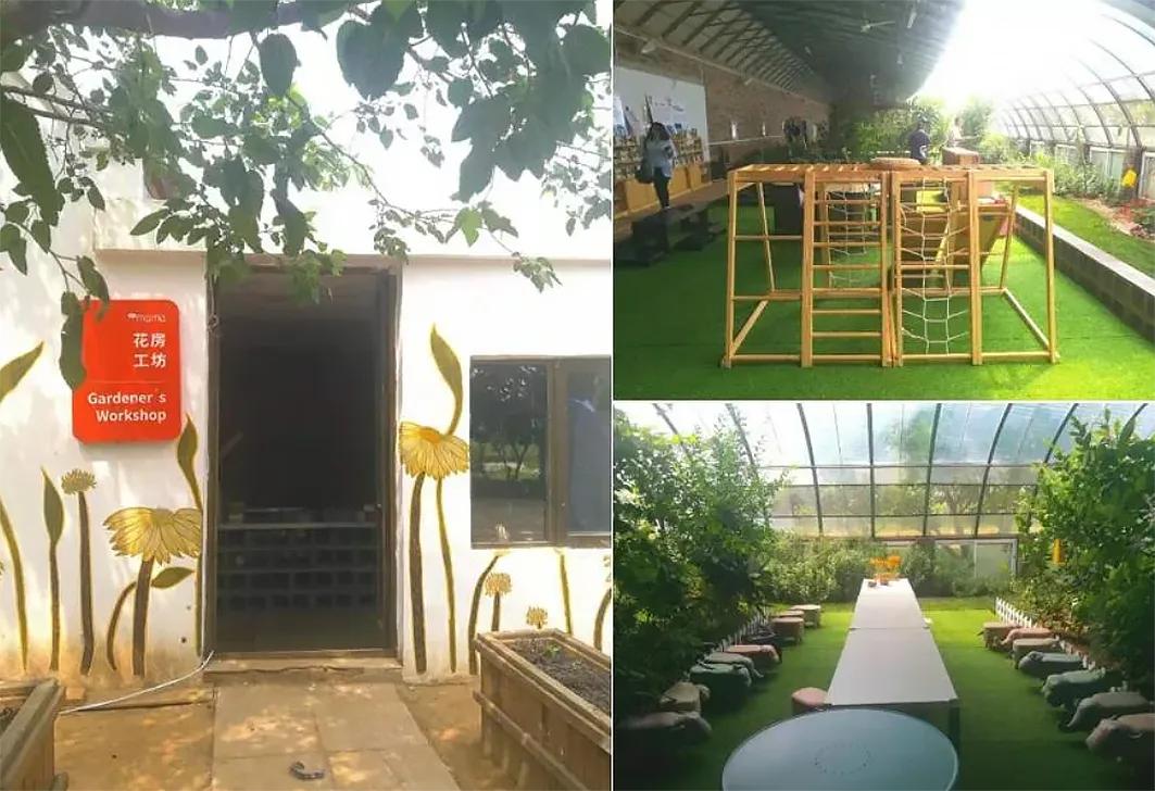 花房依托大棚而打造,内部种植有许多珍贵植物,如多肉、花卉等,既可以观赏展示、园艺产品售卖,又可以作为喝茶、聊天的休闲娱乐空间,同时也是一个可以开展亲子手工和拓展研学活动的空间场所。