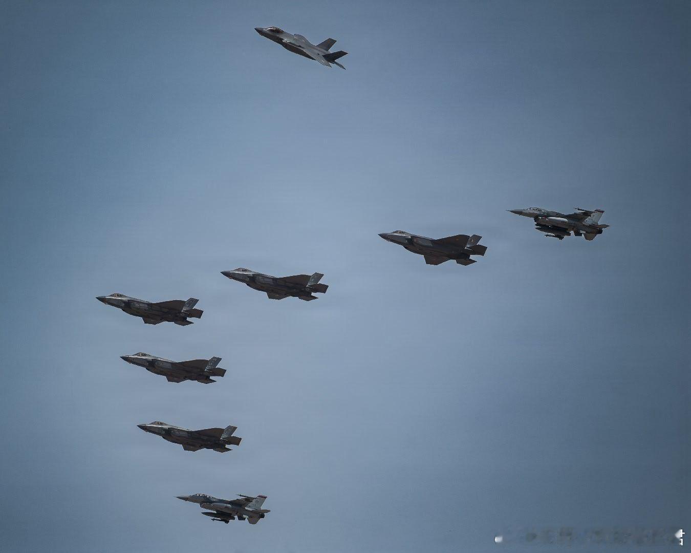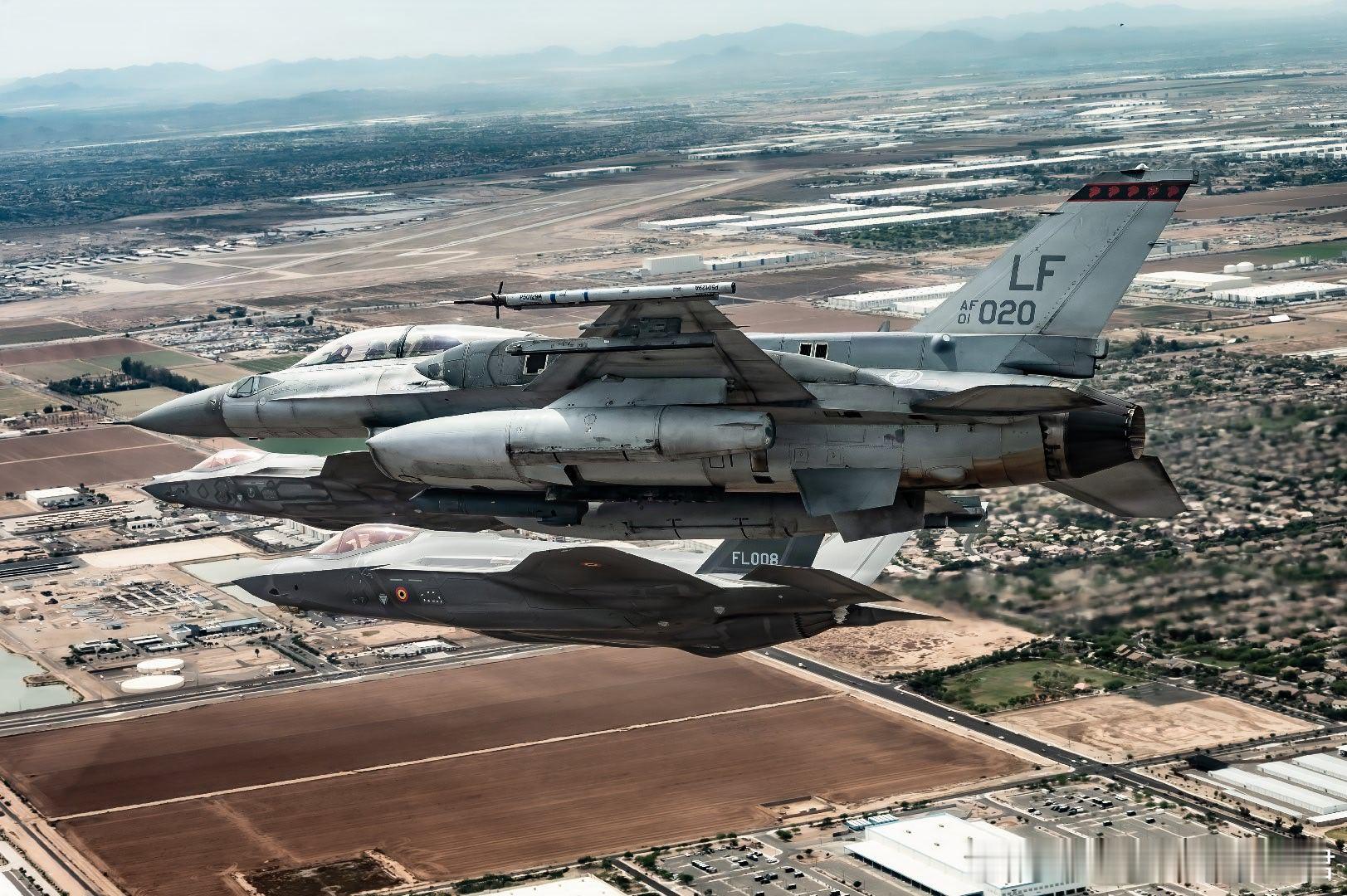2026年4月10日,F-35A和F-16D在亚利桑那州卢克空军基地上空编队飞行。这7架飞机代表了该基地的7个战斗机中队,突出了卢克空军基地作为空军主要战斗机训练基地的作用。基地通过为联合部队和盟军培养F-35A飞行员、加强全球伙伴关系以及确保随时随地快速、果断的反应能力,生成了战备状态的空中力量。
