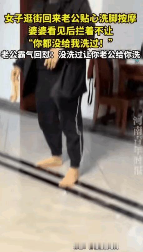 温热的水流包裹着双脚,加上老公细心的揉搓,女子脸上的疲惫渐渐消散,眼神里满是暖意,整个人都放松了下来。她静静地靠在沙发上,看着蹲在地上给自己洗脚的老公,心里满是幸福,丝毫没有察觉,婆婆已经站在了不远处,脸色越来越难看。