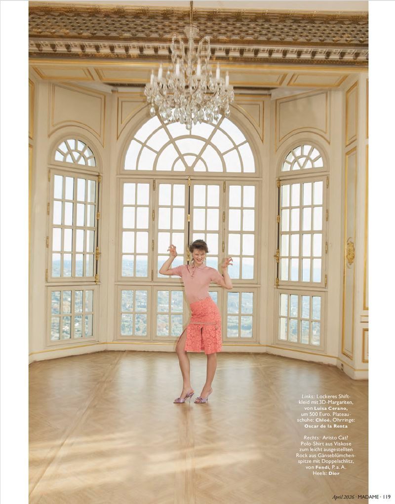 模特Sofia Hansson出镜德国版《MADAME》2026年4月刊,以粉色薄纱,洛丽塔花边和3D雏菊时装演绎“die Königin bin ich 我即女王”主题大片,灵感来自曾经的法国王后玛丽·安托瓦内特|摄影:Adriano Russo/造型:Konstantin Spachis