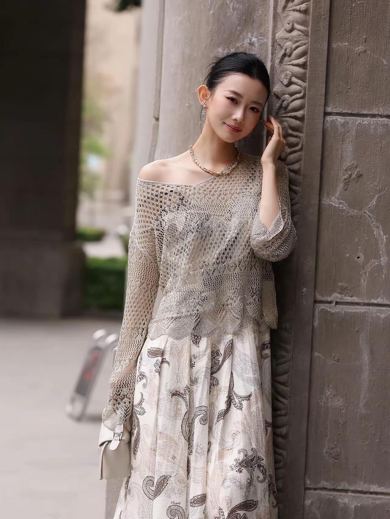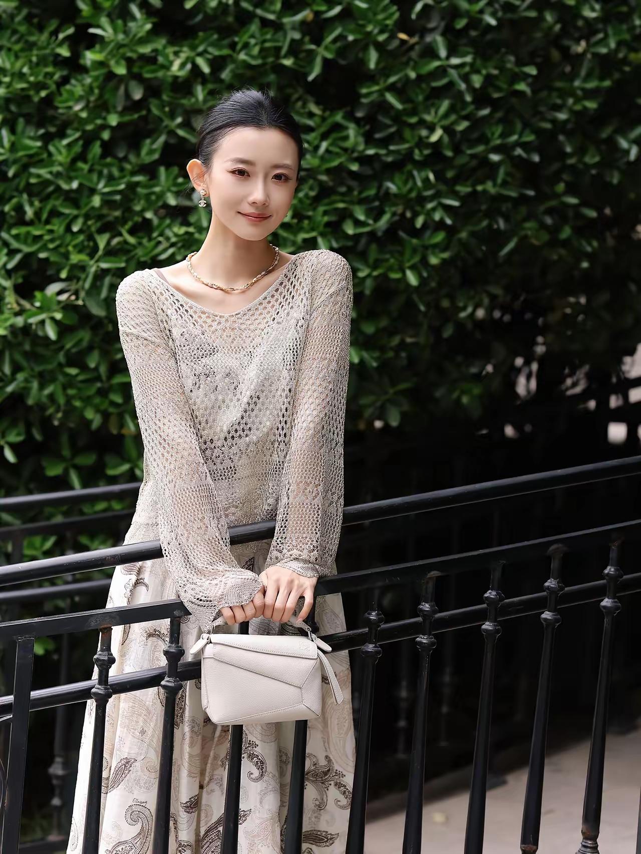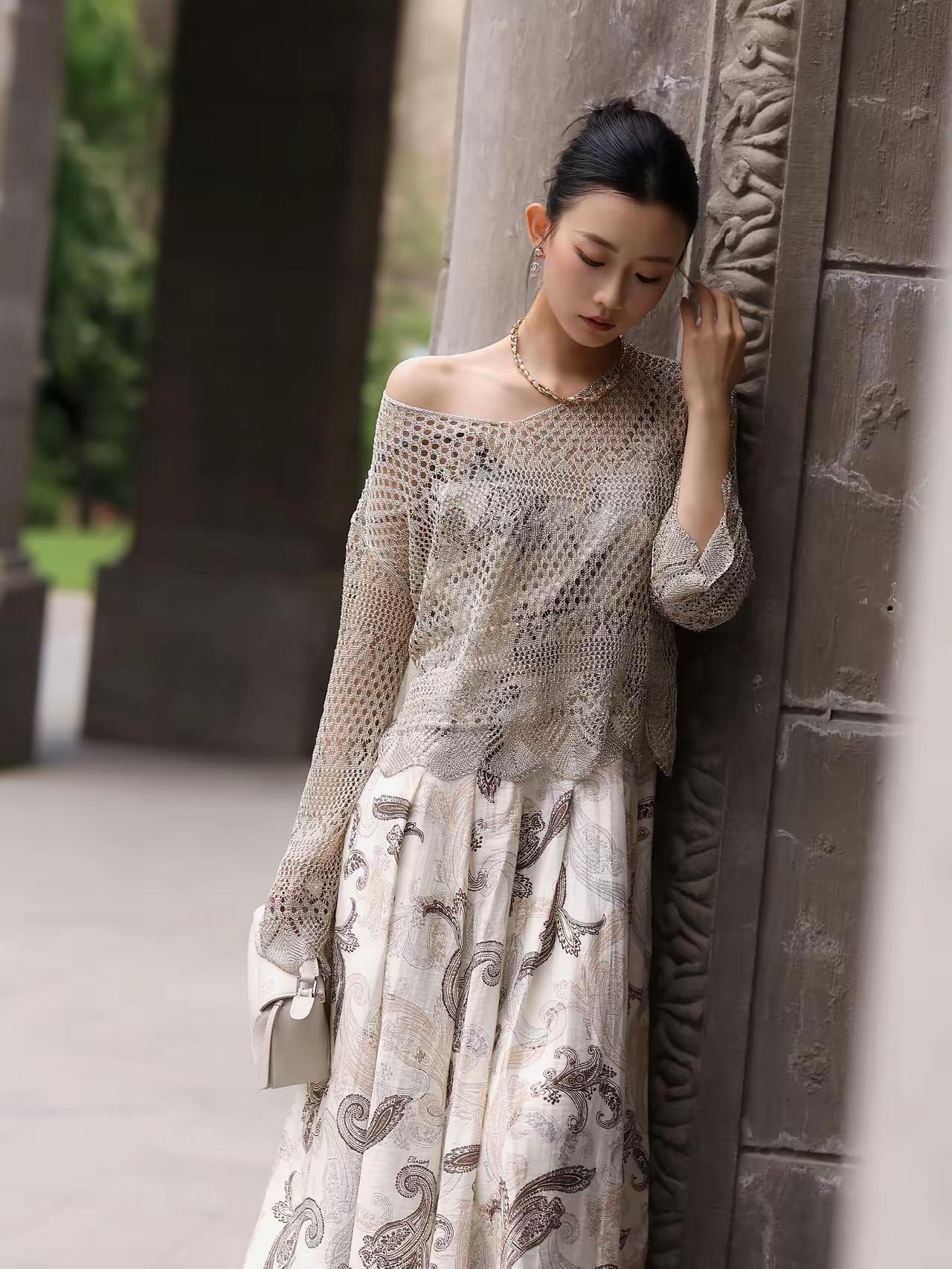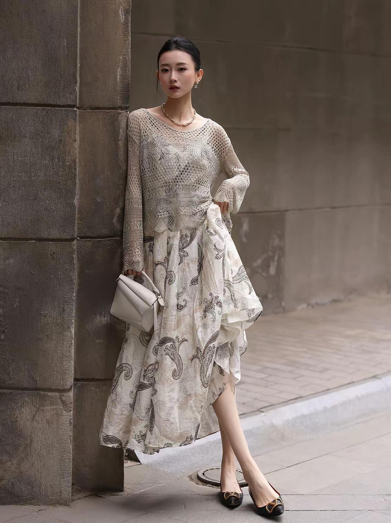 好精致的模特》优雅复古风,黑白印花裙搭配黑色高跟鞋,尽显都市女性魅力。灰丝高跟鞋