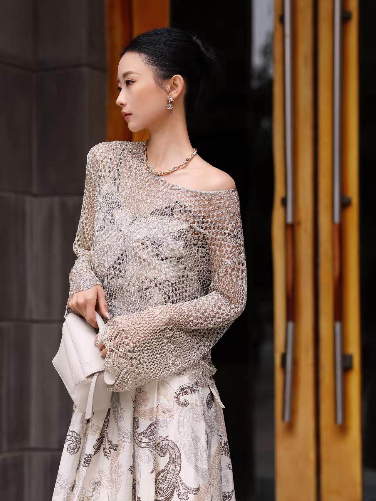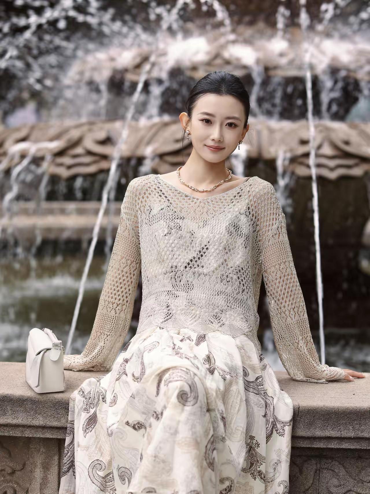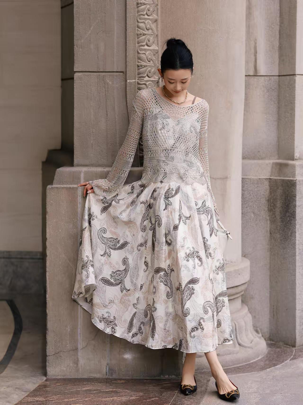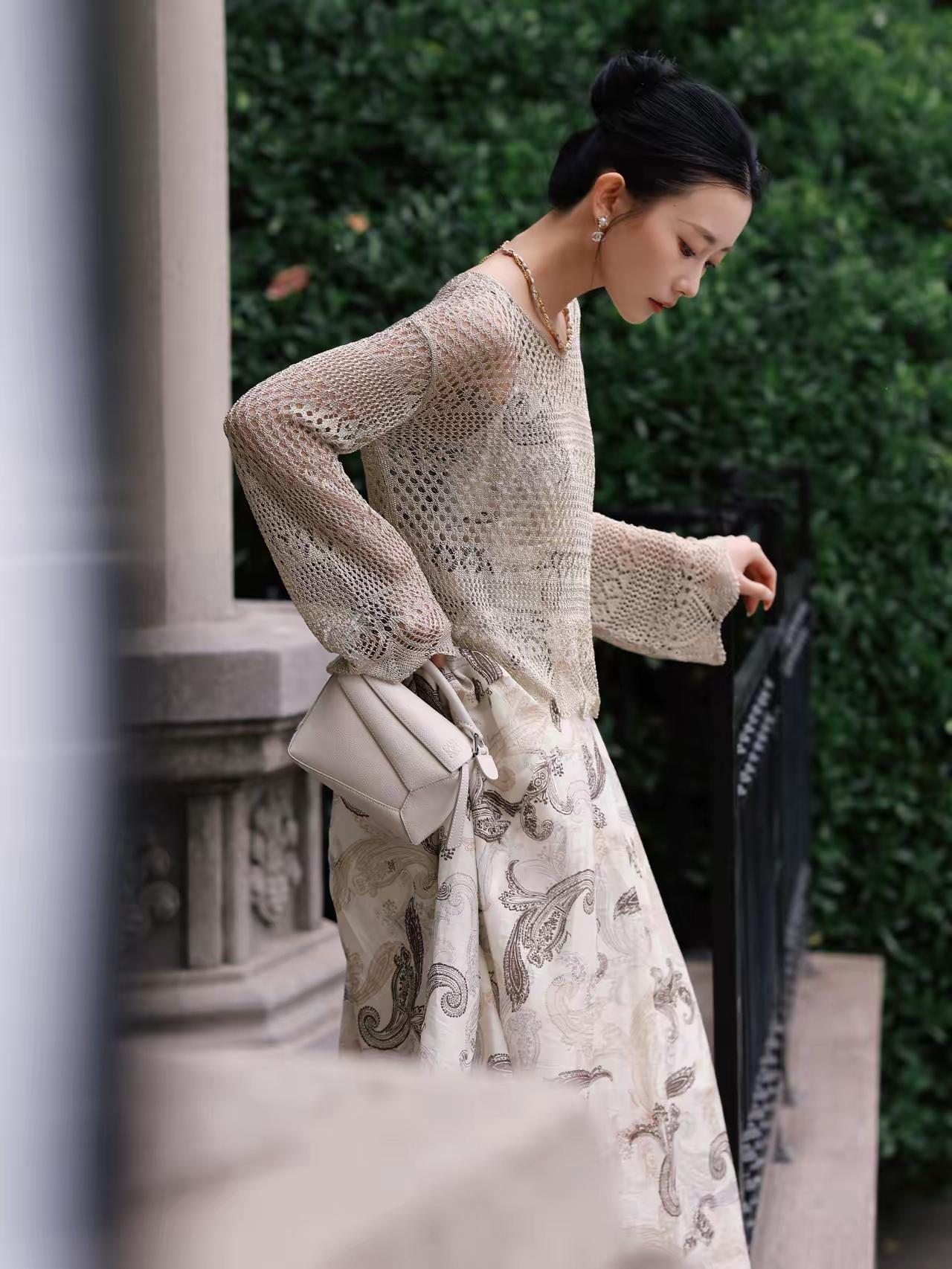 好精致的模特》优雅复古风,黑白印花裙搭配黑色高跟鞋,尽显都市女性魅力。灰丝高跟鞋
