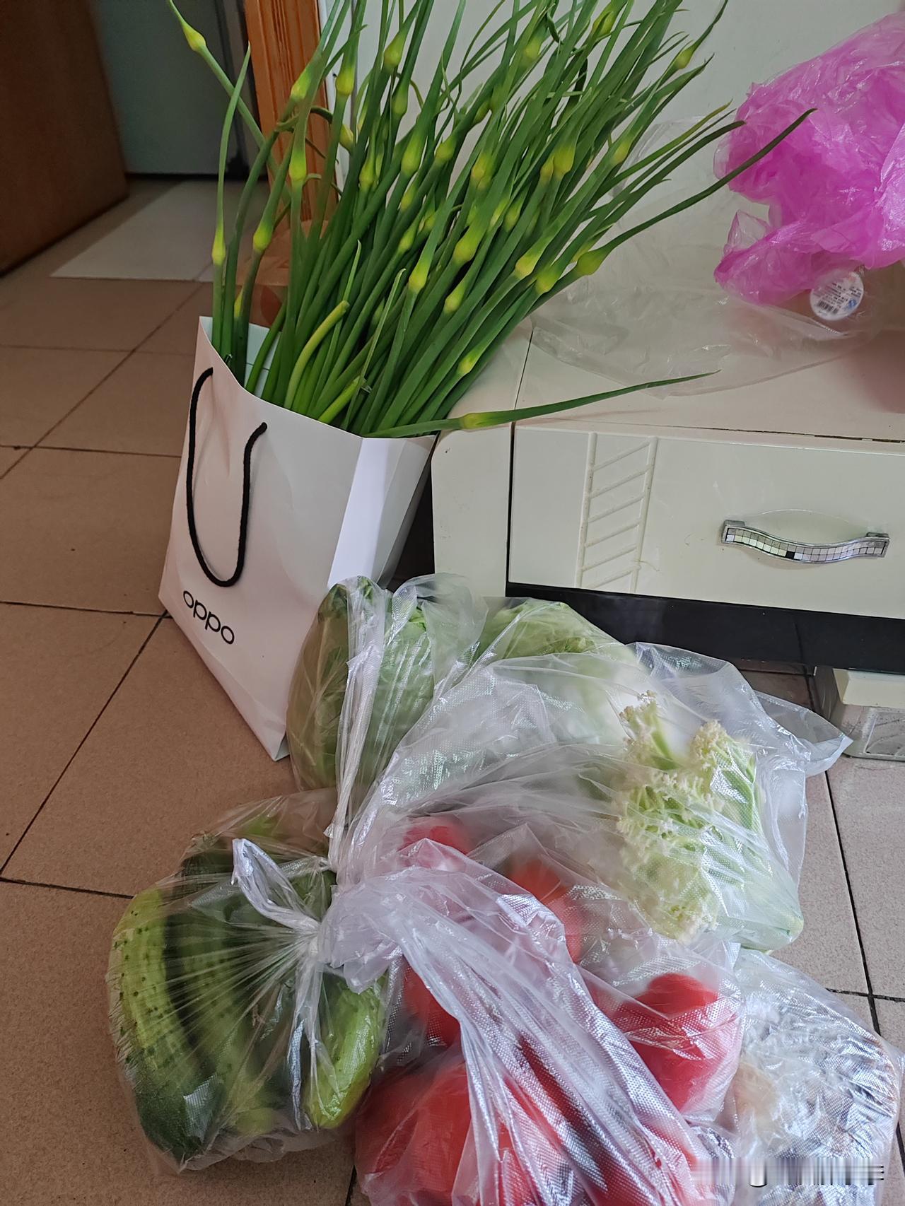 接着又去菜场买了牛肉、番茄、黄瓜还有包菜花菜!等我到家进门就看见一提蒜苔,不用想就知道是婆婆或者公公来了!