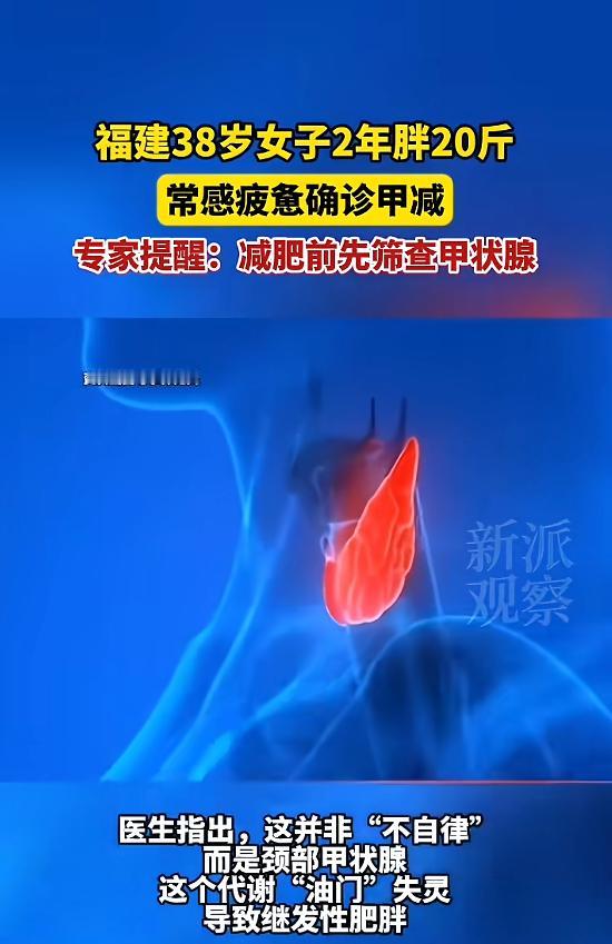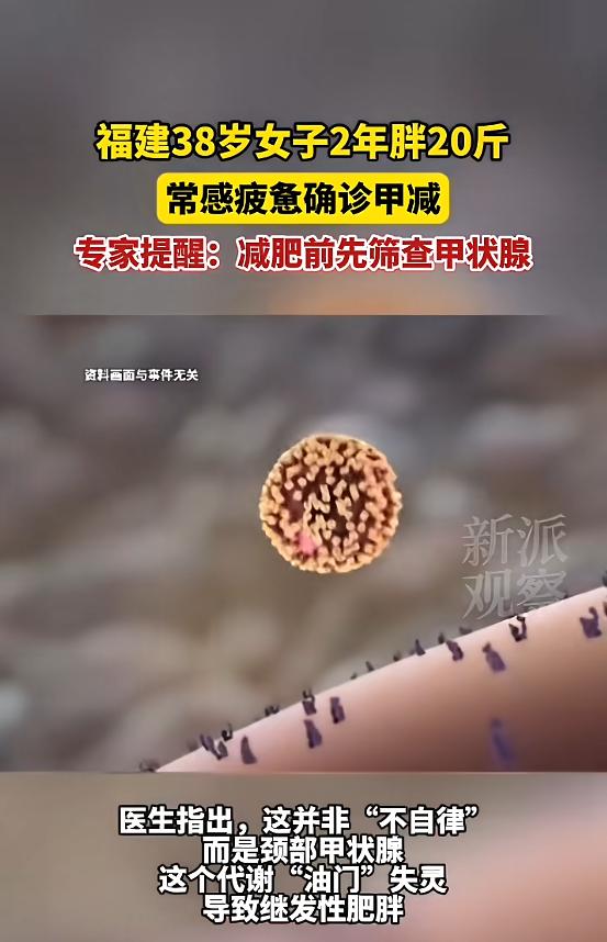 体检报告上的“甲状腺功能减退”几个字,让她瞬间懵了。她拿着报告去咨询医生,才知道自己两年的发胖,根本不是因为不自律,而是身体的代谢出了问题。 医生解释,甲状腺就像身体的代谢“油门”,它分泌的激素控制着全身的新陈代谢。