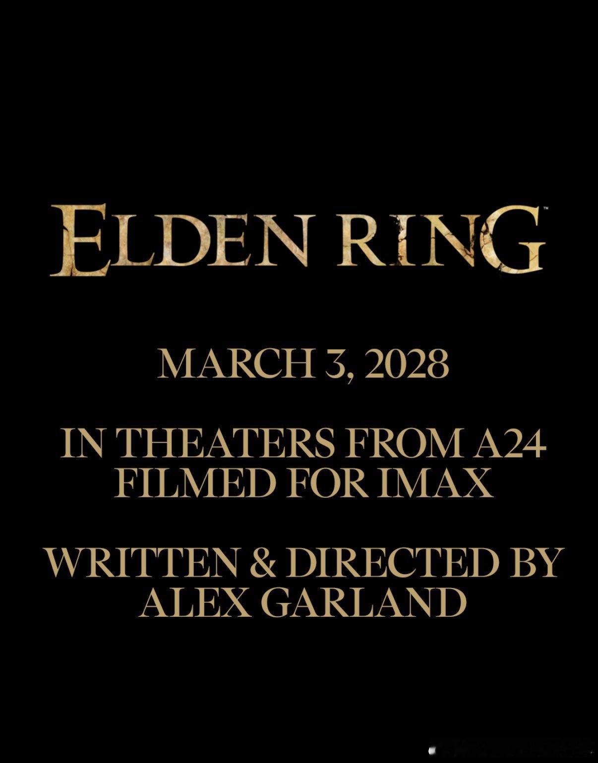 亿万同人字幕组 真人版《艾尔登法环》电影将于2028年3月3日在影院上映。•