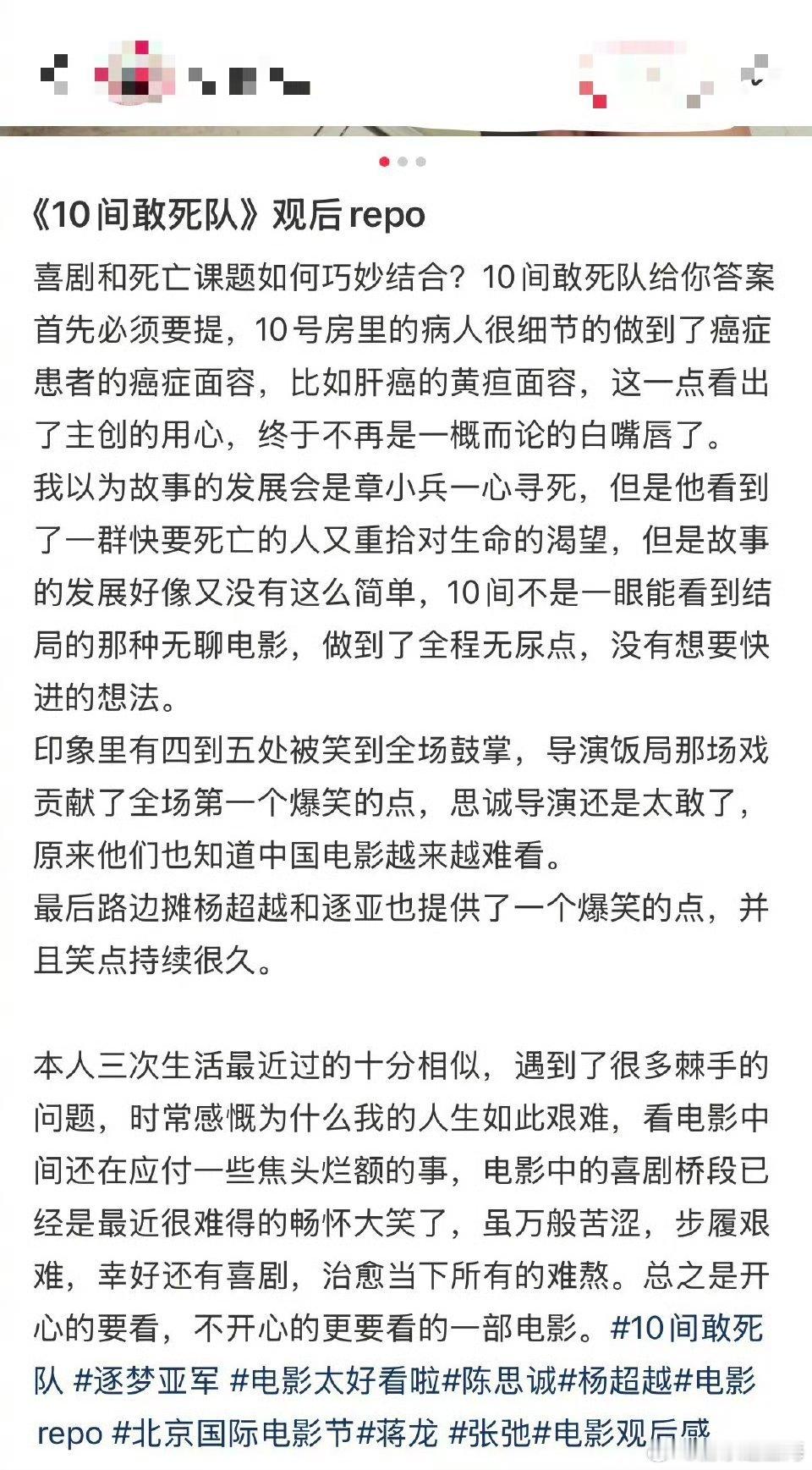 10间敢死队北影节场刊最高分 陈思诚导演永远不会让我们失望!五一必须带上全家去看!蒋龙×张弛延续喜人默契,平凡群像不煽情却好哭又好笑,向死而生的感染力直接拉满,不愧是北影节评分第一!