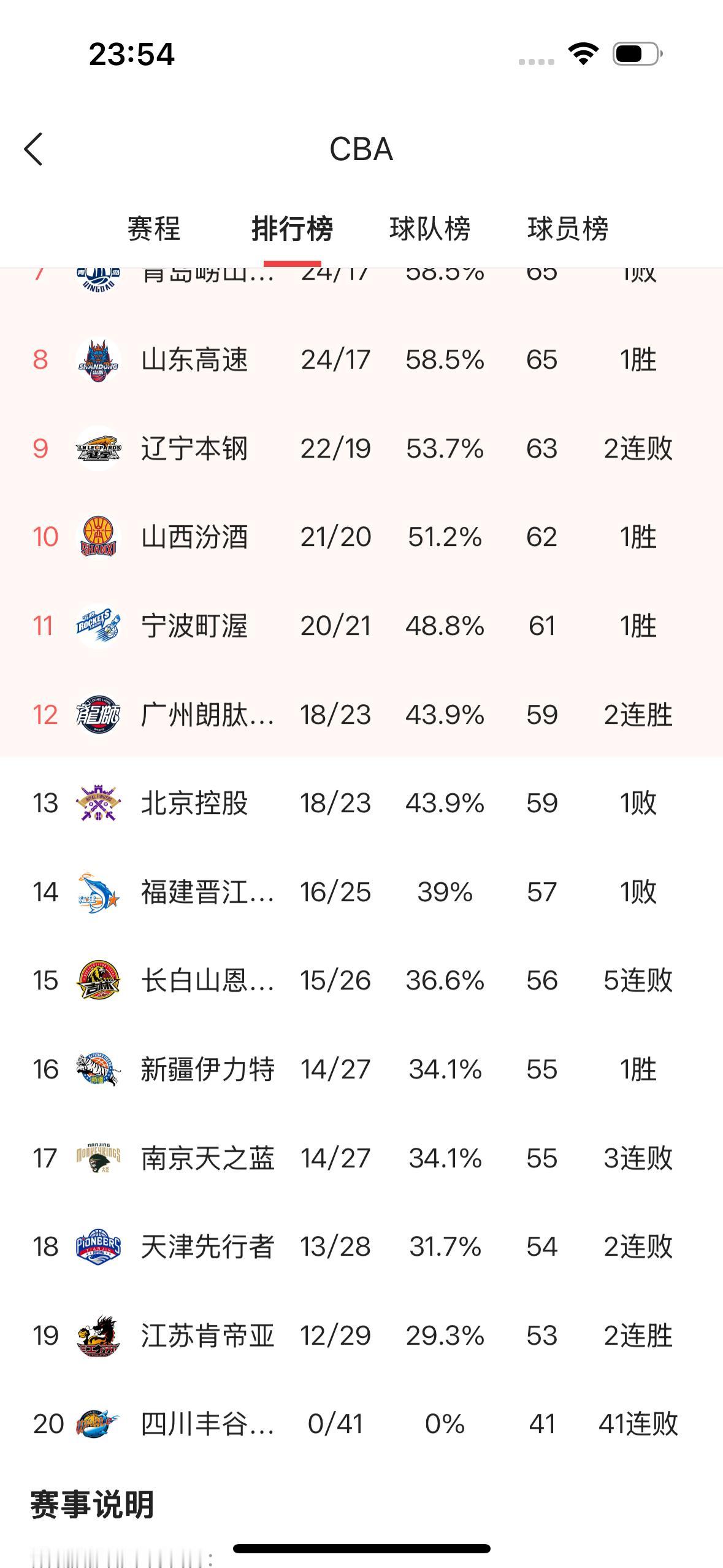 目前新疆飞虎男篮这个赛季以14胜27负暂时排名CBA联赛的第十六位,也就是倒数第五名,这是新疆飞虎男篮自从打进甲A联赛、CBA联赛取得的最差成绩。