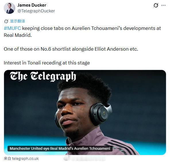 【曼联有意引进琼阿梅尼】《电讯报》James Ducker:皇马中场琼阿梅尼,在