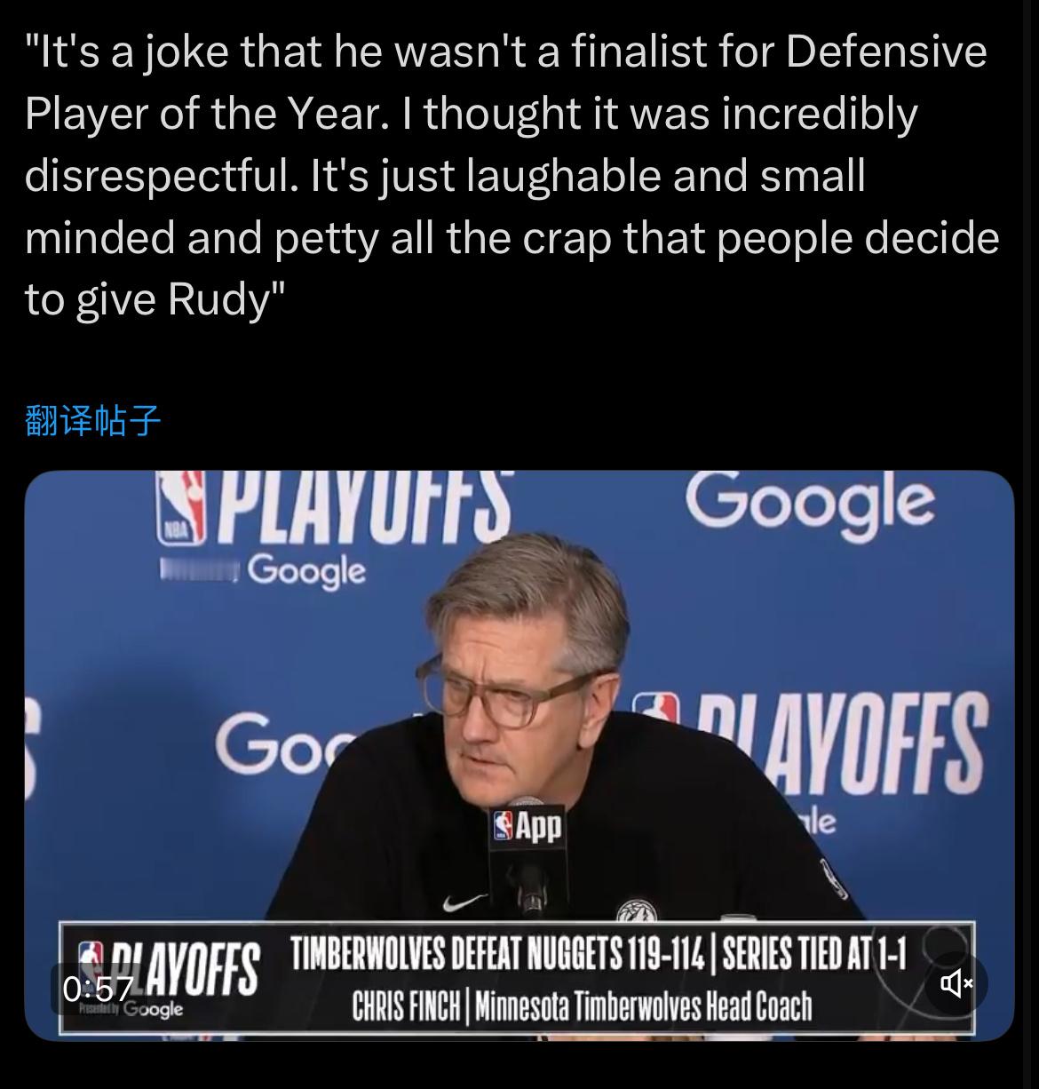 芬奇:“他没能入选年度最佳防守球员的候选名单简直就是个笑话,我觉得这极其不受尊重。