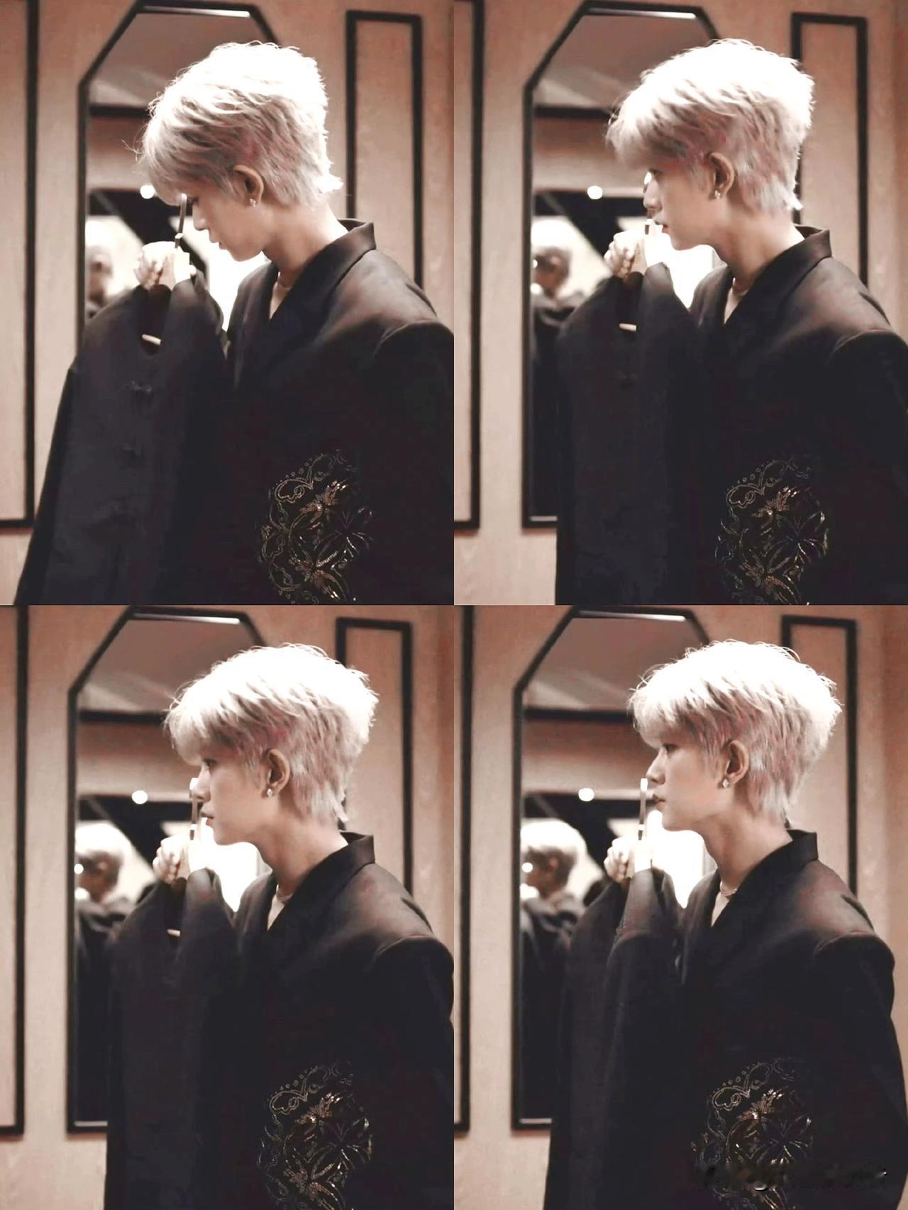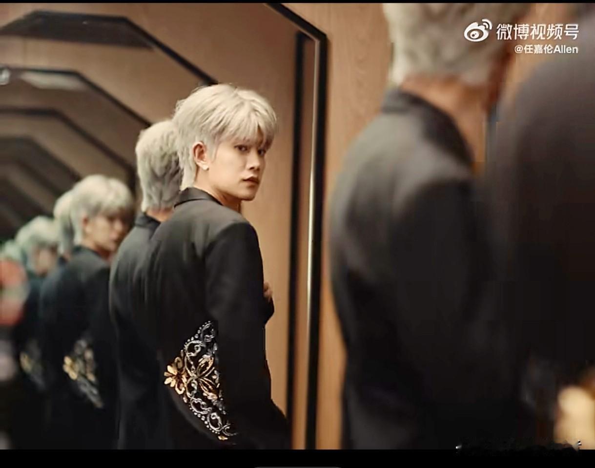 银白发色搭配重工刺绣黑西装