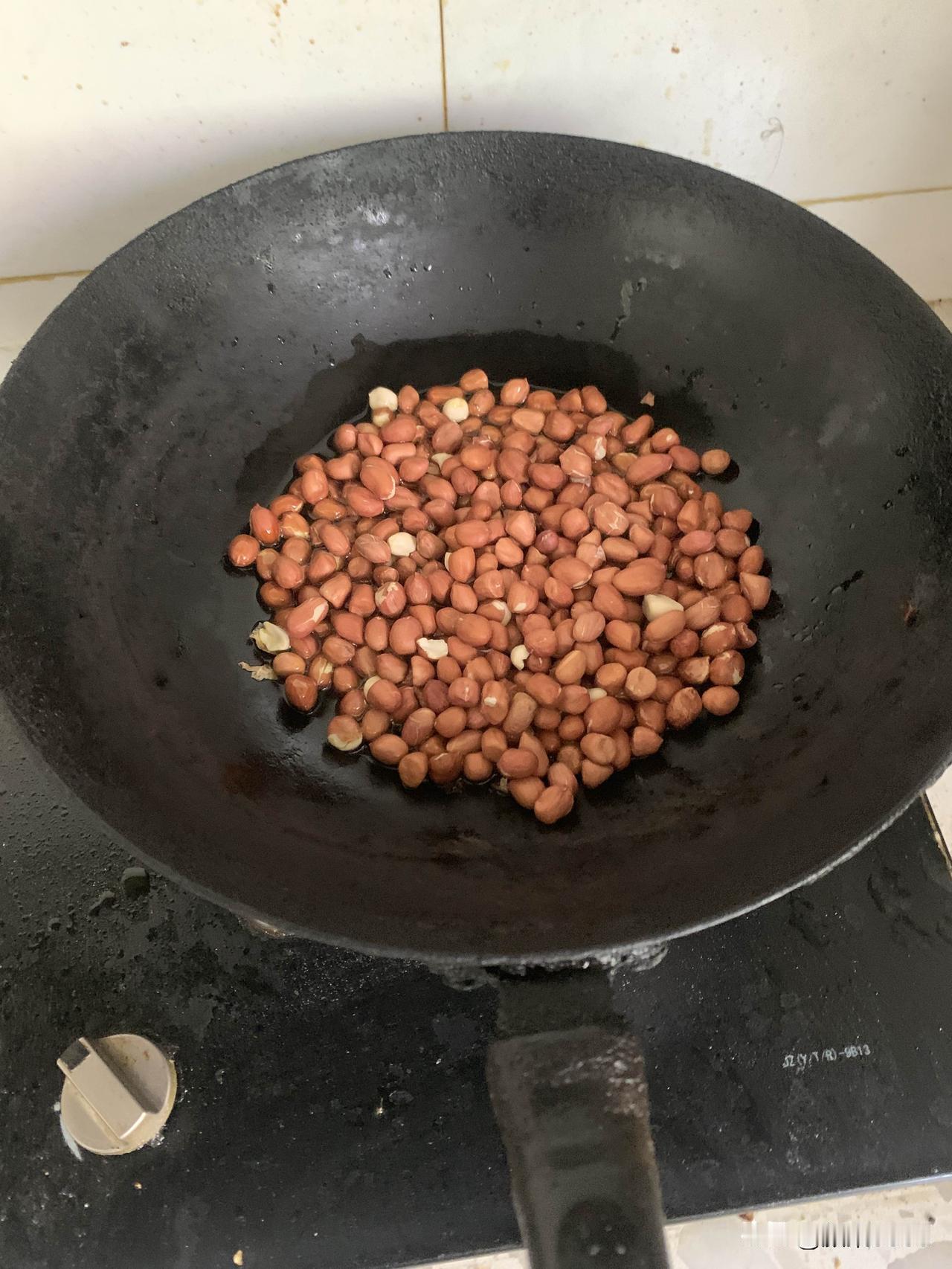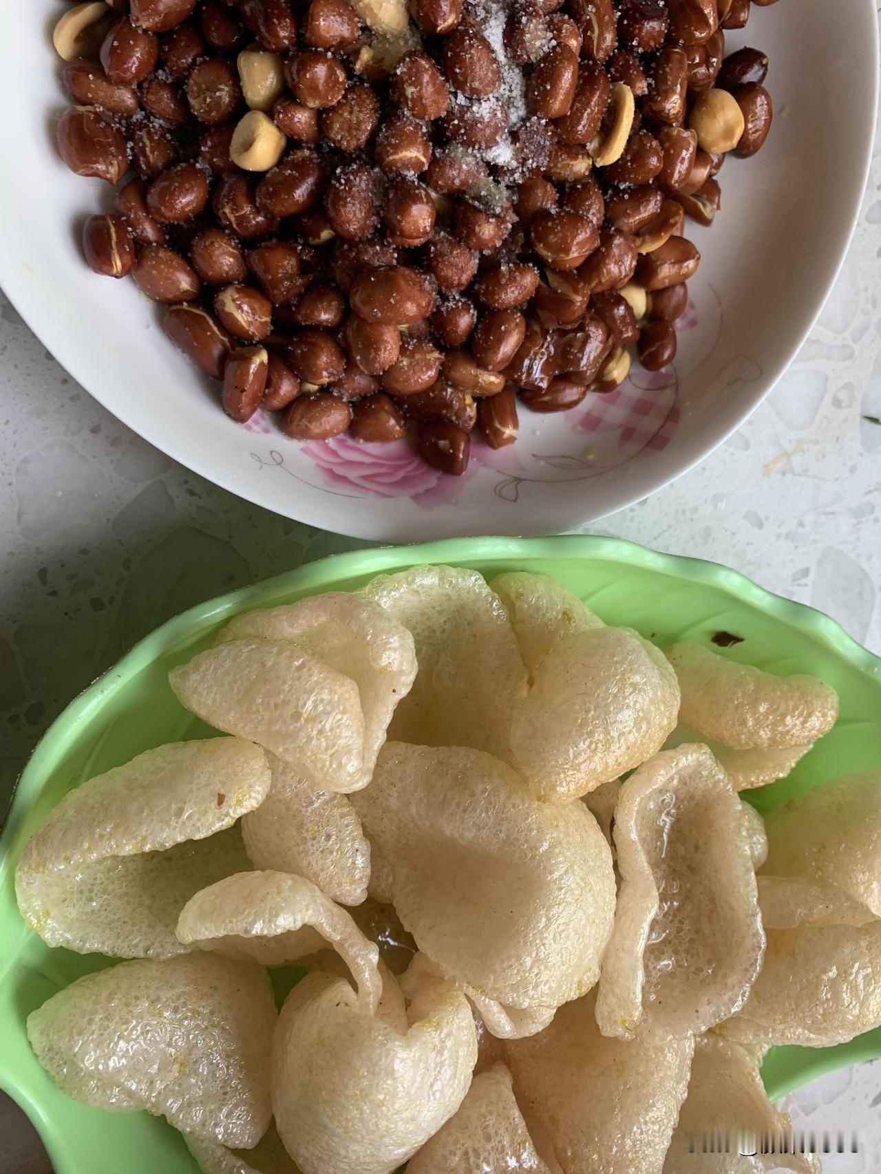 先炸一盘花生米,虾片,好久没吃了。平时当零食吃也可以。